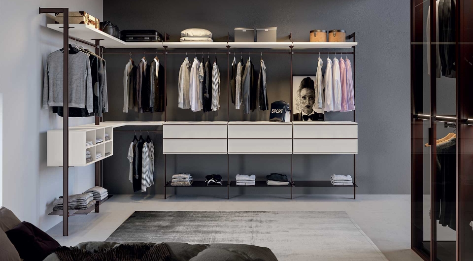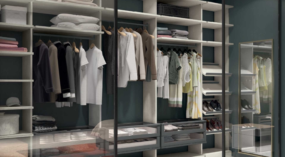 Valuta il numero di abiti, scarpe e accessori che devi riporre, considera il tipo di capi che possiedi (vestiti lunghi, giacche, maglioni) per scegliere l’altezza degli appendiabiti e la profondità dei ripiani, decidi anche se hai bisogno di un piano d’appoggio per gli accessori o di una seduta.