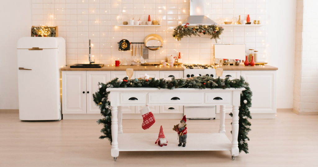 Se l’arredamento della tua cucina è moderno o presenta dei colori scuri, non temere: ti basterà puntare sulle luci e sulle ghirlande bianche (o di altri colori chiari) per renderla accogliente e darle un’aria di Natale.