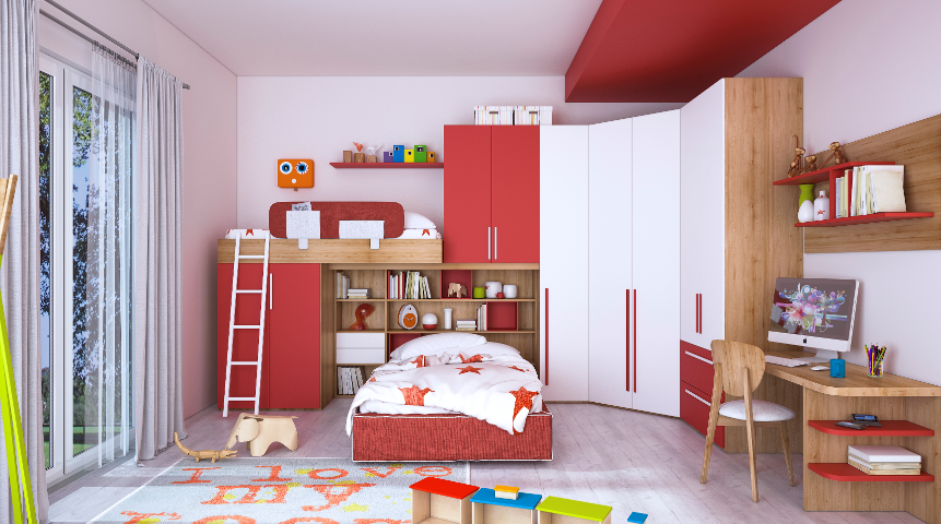 I bambini in età scolare (6-12 anni) necessitano di ambienti che possano supportare sia le attività ricreative che quelle didattiche. La cameretta diventa sempre più articolata, con zone specifiche per dormire, studiare e giocare.