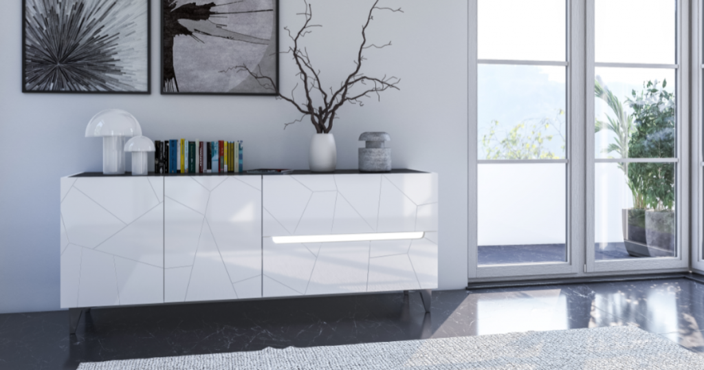 La finitura lucida di colore bianco aggiunge ulteriore eleganza a questa madia che s’inserirà alla perfezione all’interno di un contesto contemporaneo.