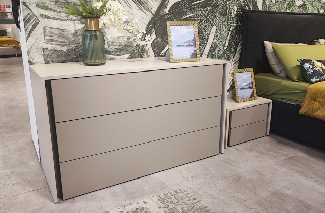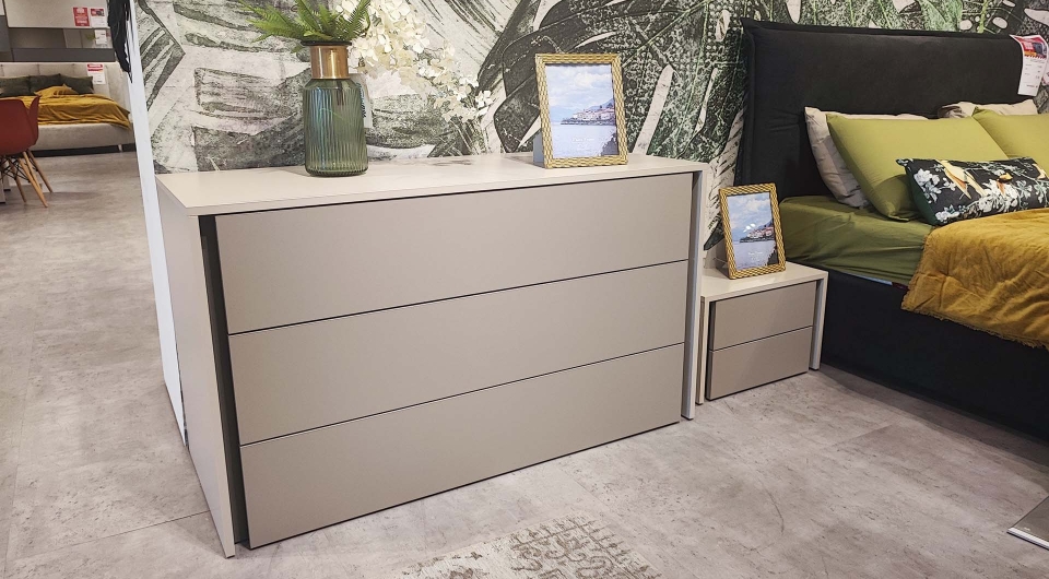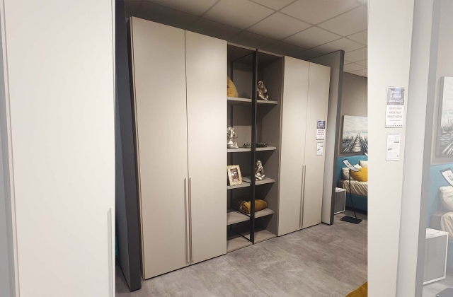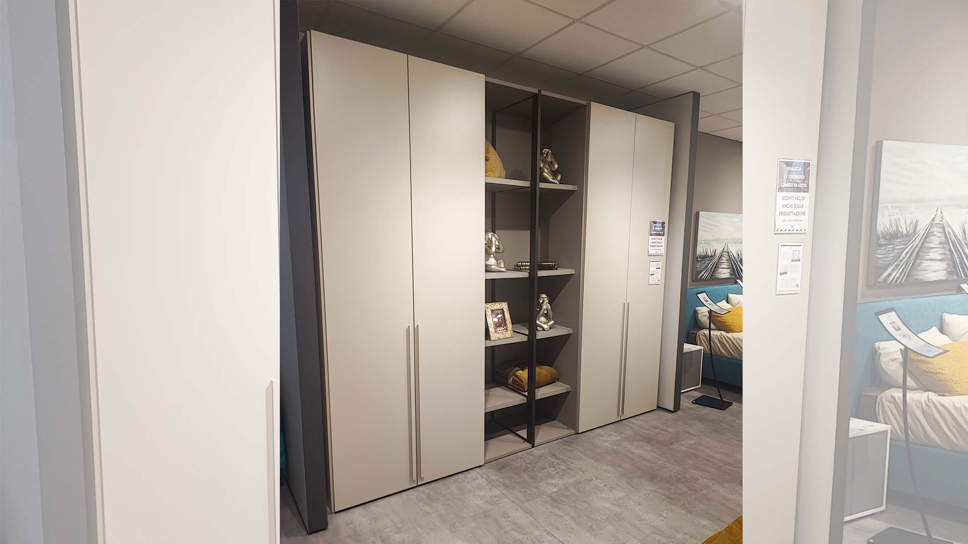Camera composta da armadio con ant battenti e libreria centrale, 1 comò e 2 comodini.