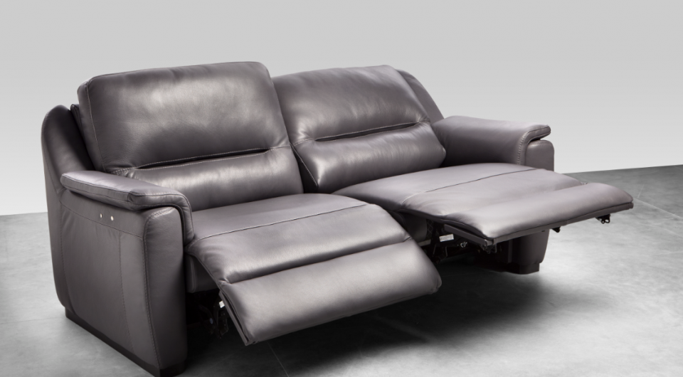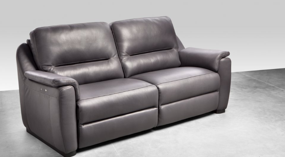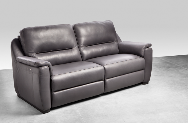 Favola è un divano 2 posti con recliner elettrico su entrambe le sedute, disponibile in vari tessuti, colori e misure.