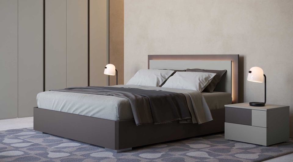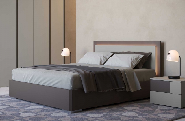 Deciso e rigoroso, il letto matrimoniale Alabama, realizzato in finitura laccato opaco fango e brown, donerà un tocco di classe alla tua camera da letto.