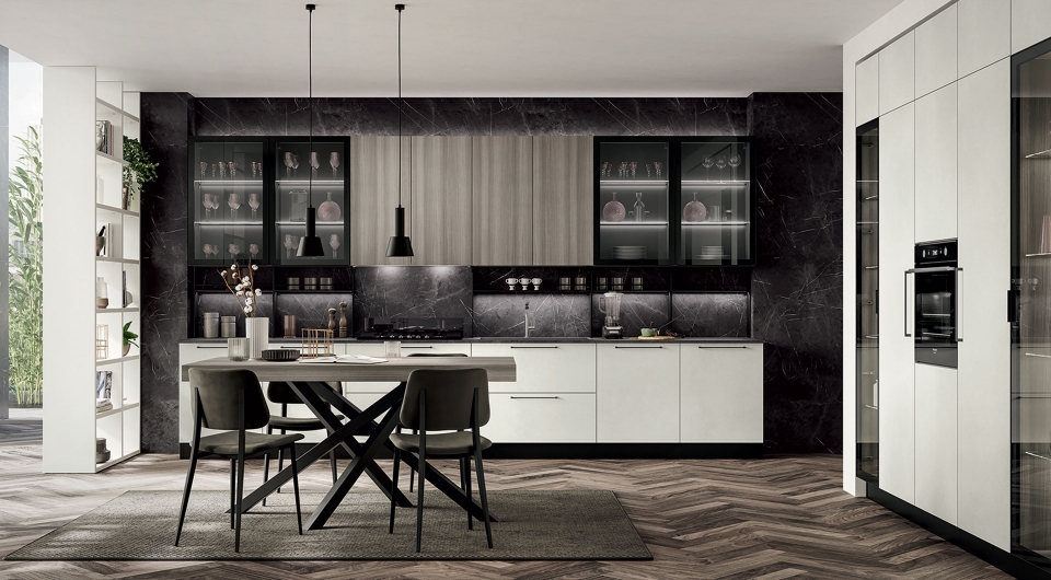 Alexia è la nostra cucina elegante che incarna l'essenza del design contemporaneo, offrendo un ambiente culinario straordinario che combina stile e praticità in modo impeccabile.