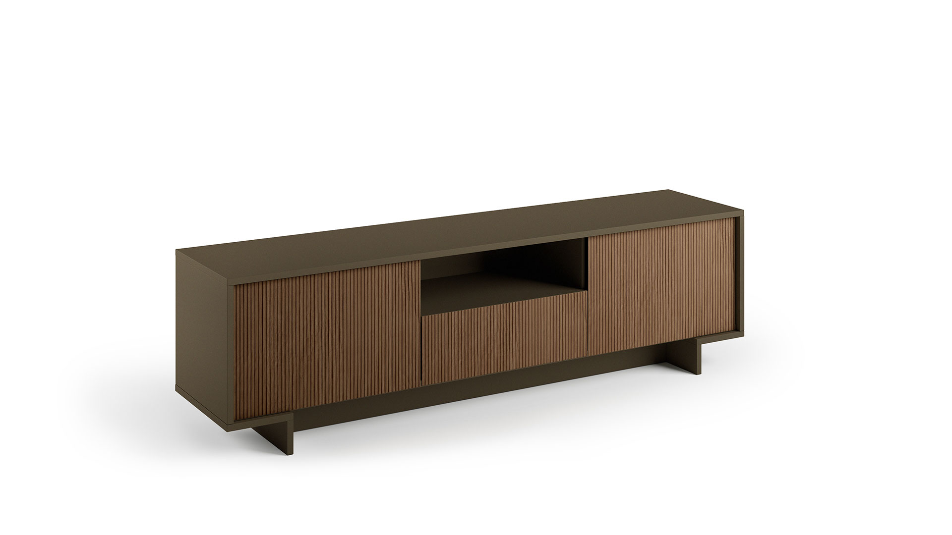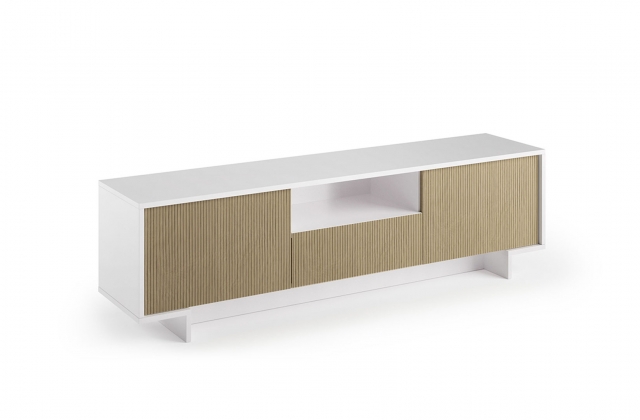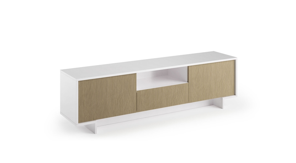 Allegra è una madia porta tv composta da 2 ante e 1 cassetto centrale dotato di guide in metallo e sistema di apertura push to open.