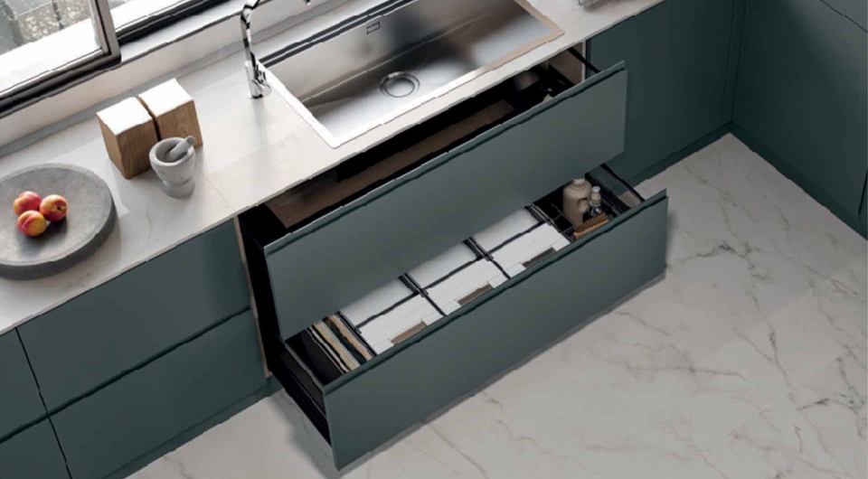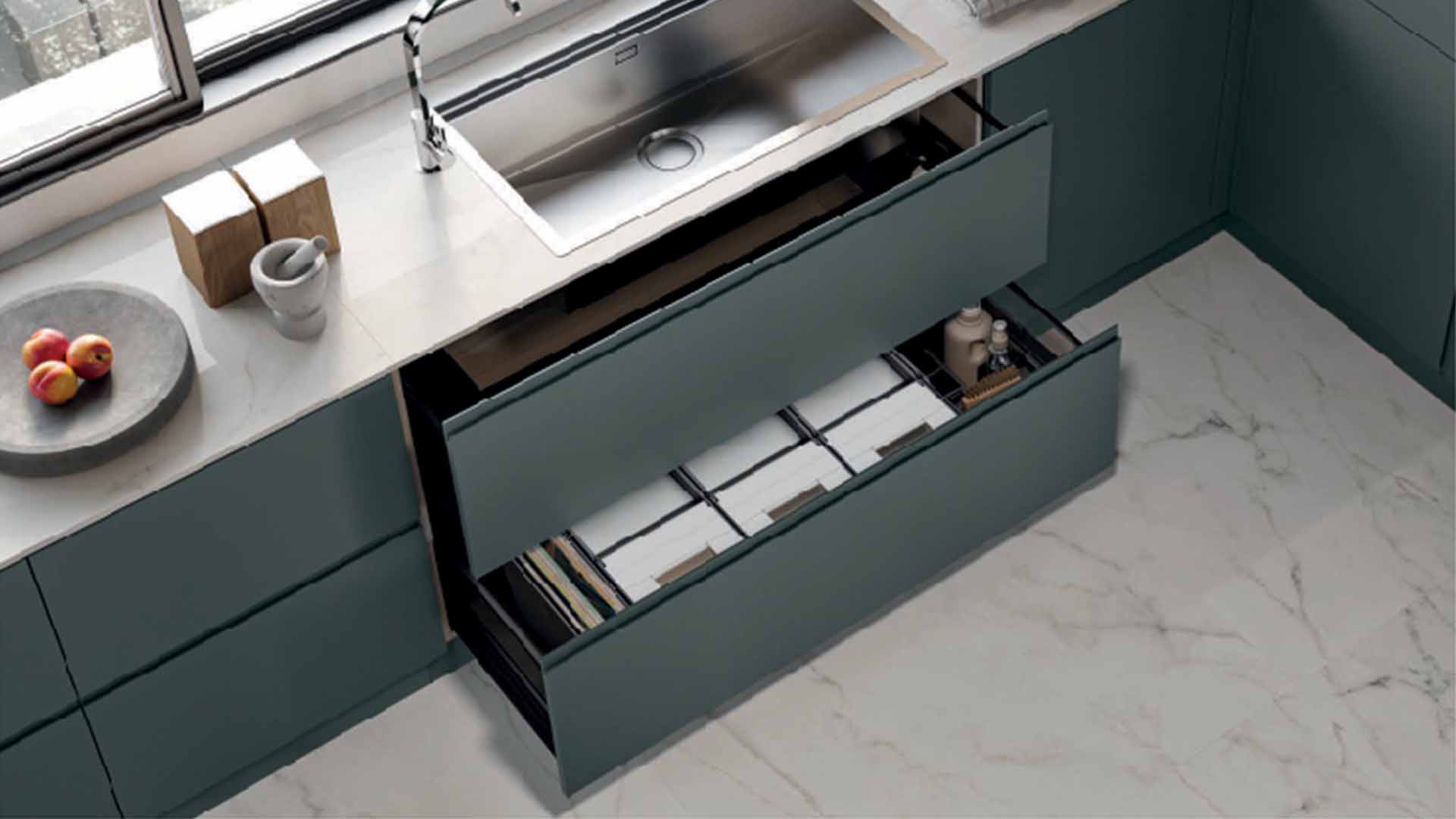Disponibile in un’ampia gamma di finiture, consente di creare combinazioni uniche e di tendenza, perfette per valorizzare il tuo ambiente cucina.