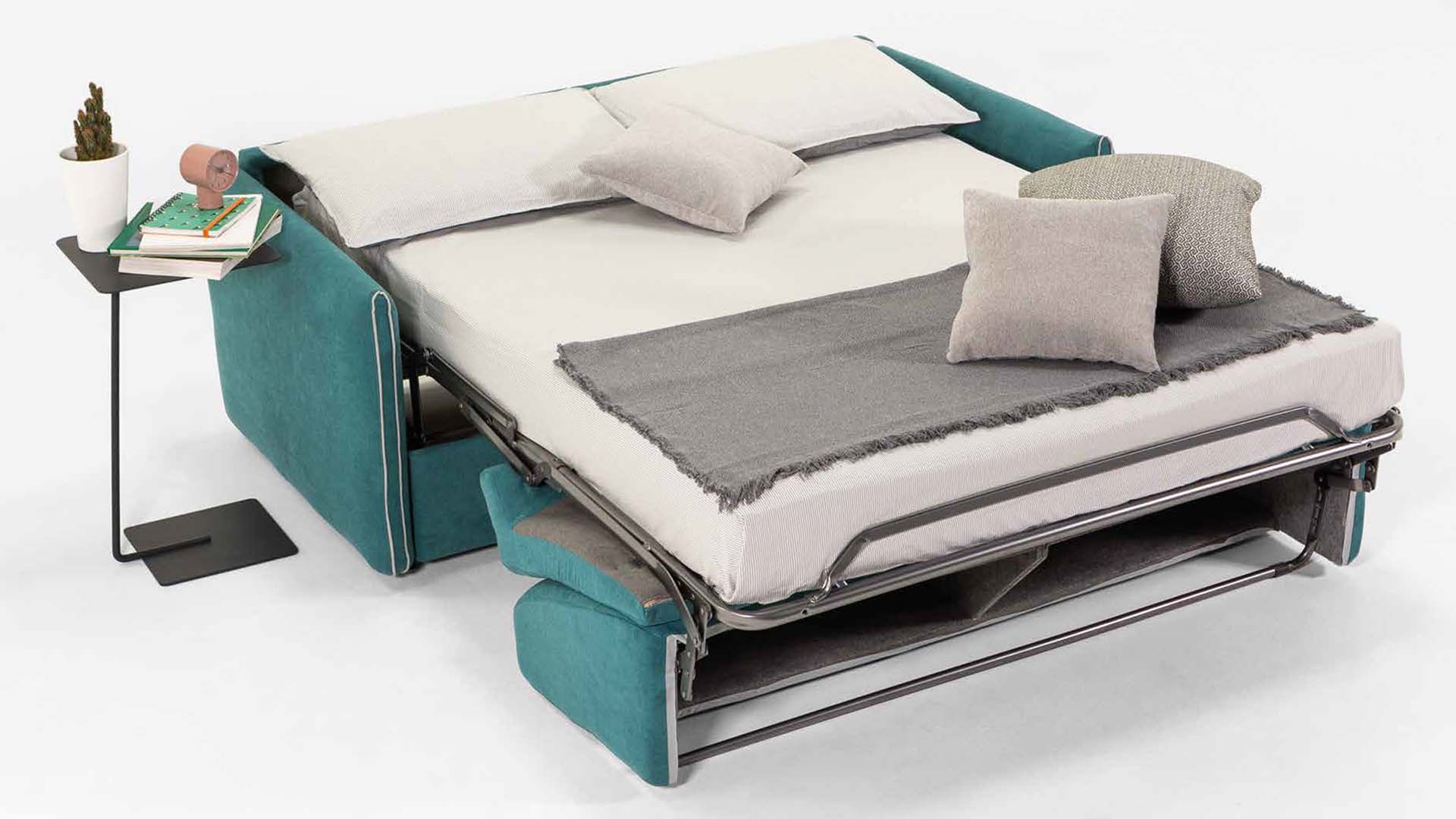La rete del divano letto è completamente elettrosaldata, ma l'elemento che caratterizza questo modello è il materasso di 17 cm di altezza, offrendo il giusto comfort a chi lo utilizza.
