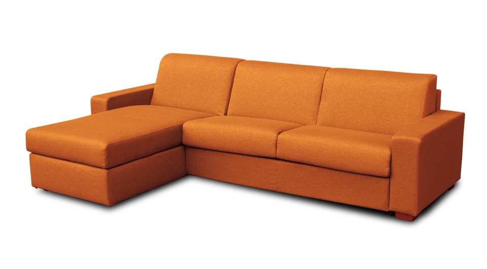 Brigid è un divano letto, completamente sfoderabile e dotato di penisola contenitore. Questo divano può essere sfruttato non solo di giorno, ma all'occorrenza anche di notte.