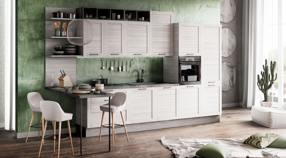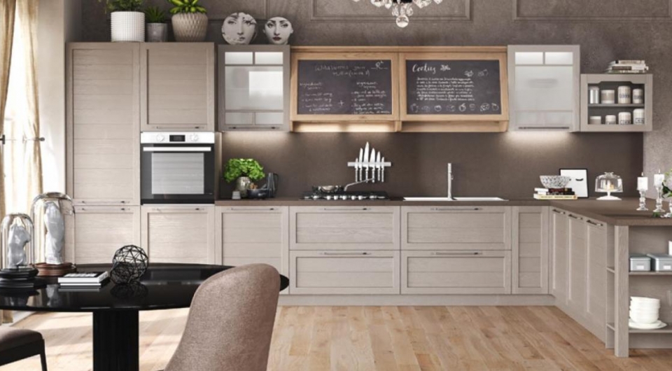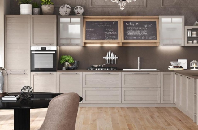 Toni e materiali caldi esaltati dai colori pastello che fondono la tradizione e lo stile contemporaneo in un nuovo ed unico mood. L’anta dogata con telaio in massello frassino 22mm e la possibilità di inserire l’esclusivo pannello lavagna o il vetro temperato 4mm permettono una personalizzazione unica ed esclusiva che rispetta la linearità delle forme anche nella versione con gola. Un nuovo modo di vivere la cucina caratterizzato dalla liberta di scegliere colori e materiali che ti garantiscono l'unicità dello spazio domestico.