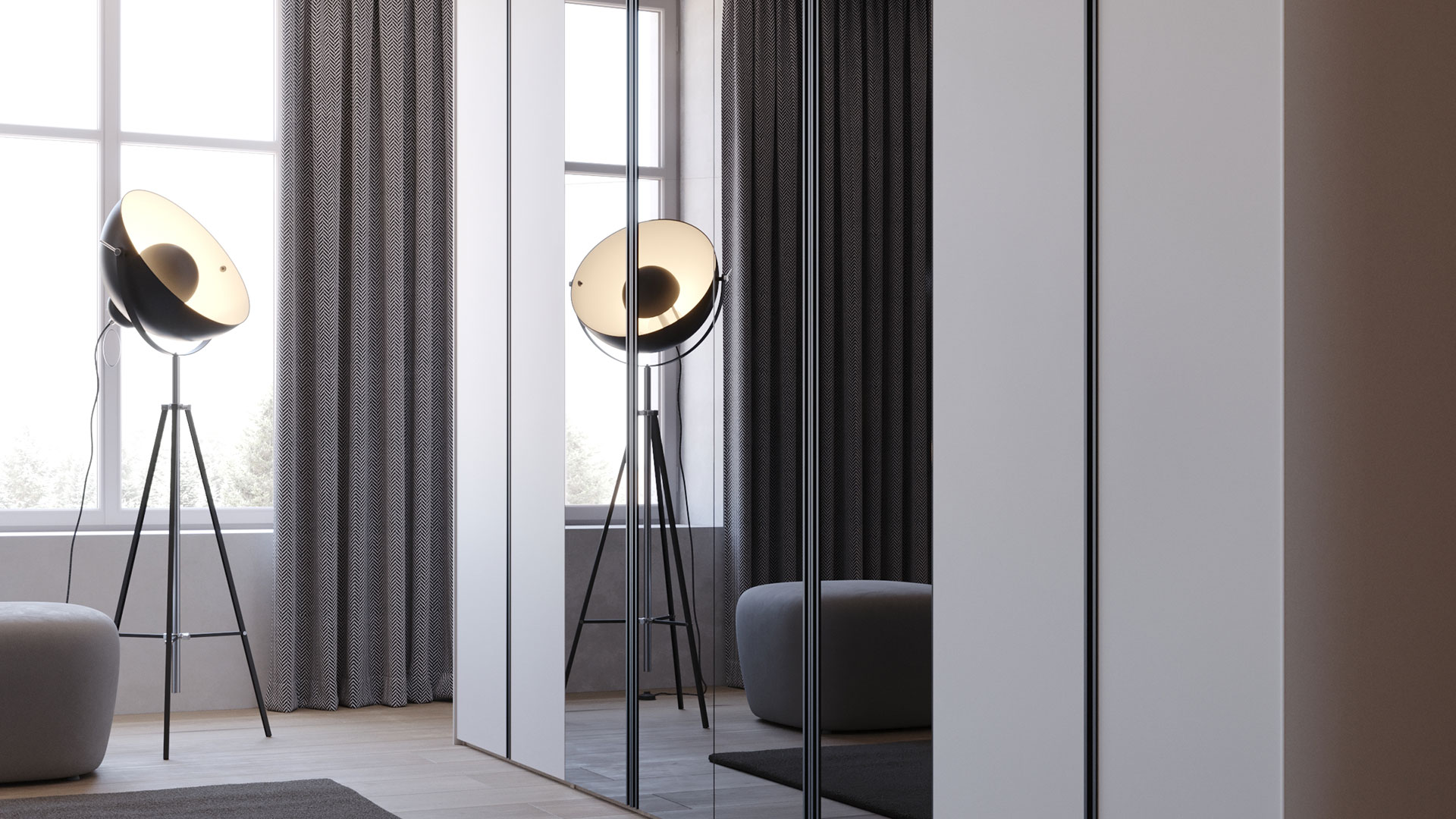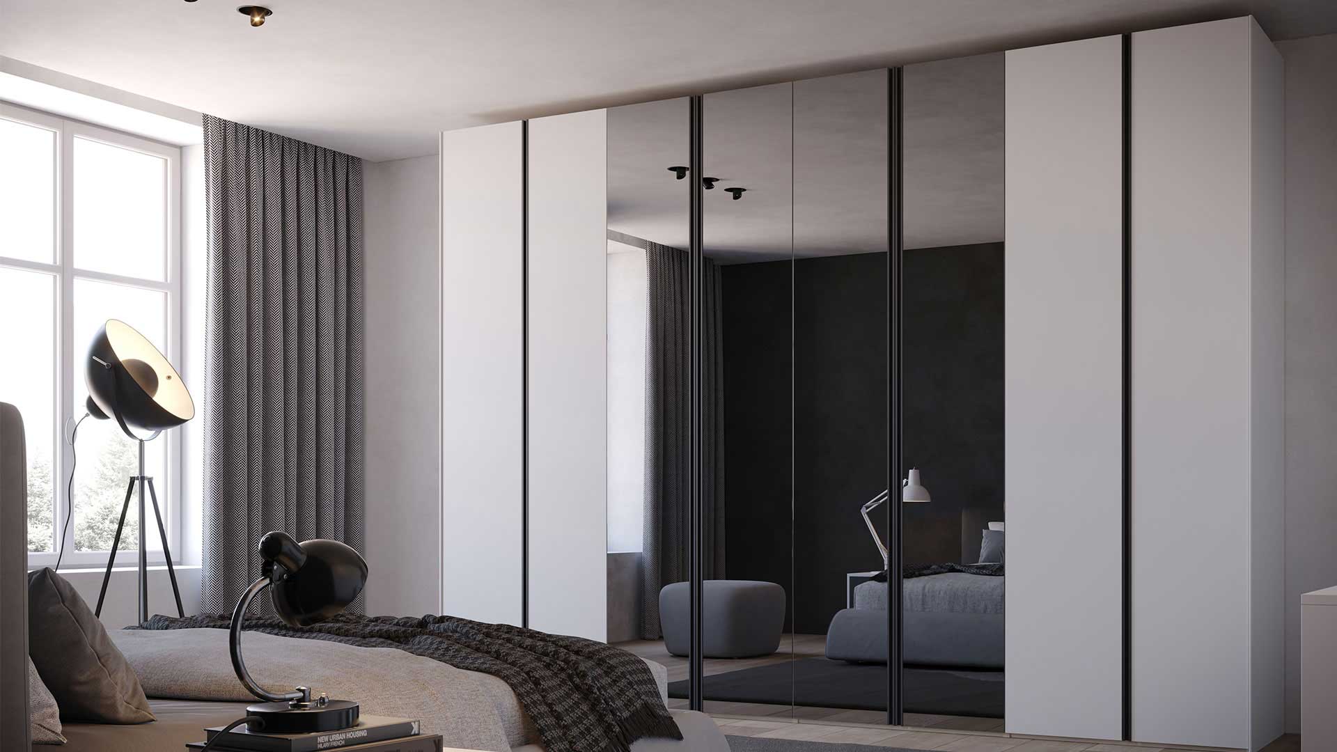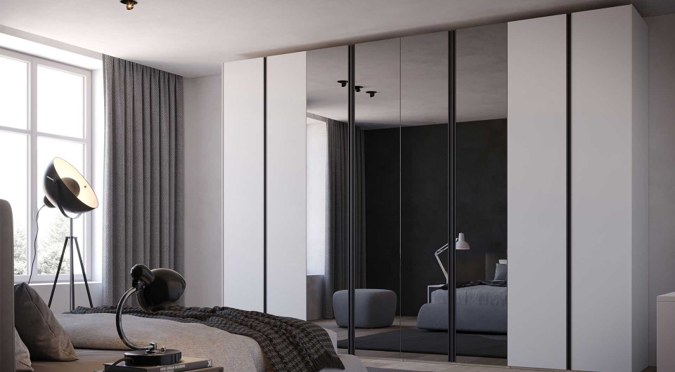 Un armadio con specchi integrati che darà subito un tocco di classe alla tua camera. I pannelli laterali in laccato opaco cedono il posto ai pannelli centrali nella parte centrale della composizione.