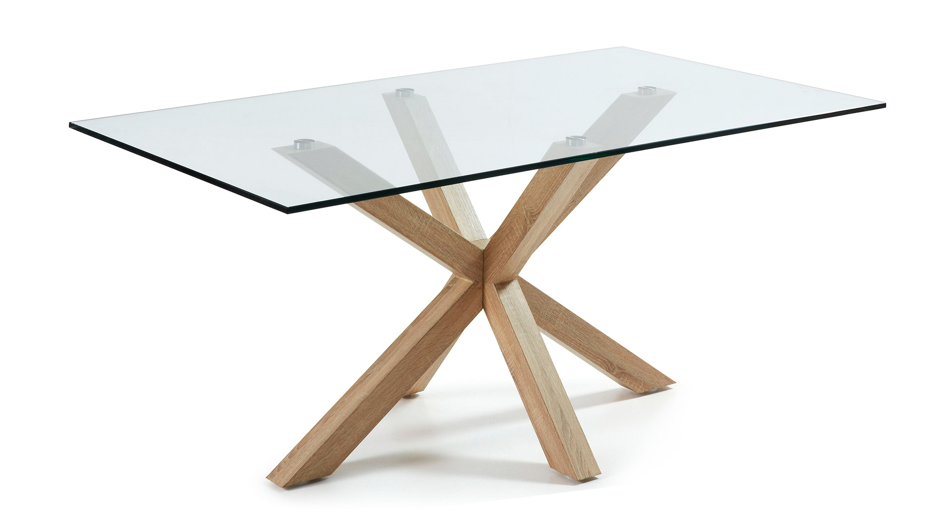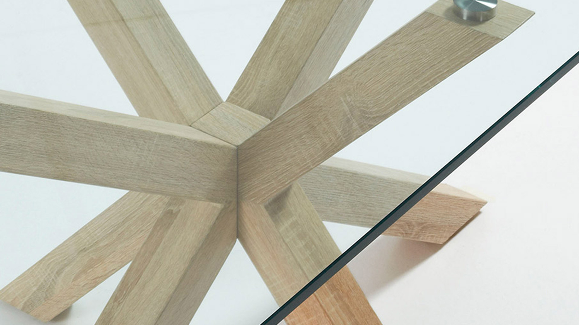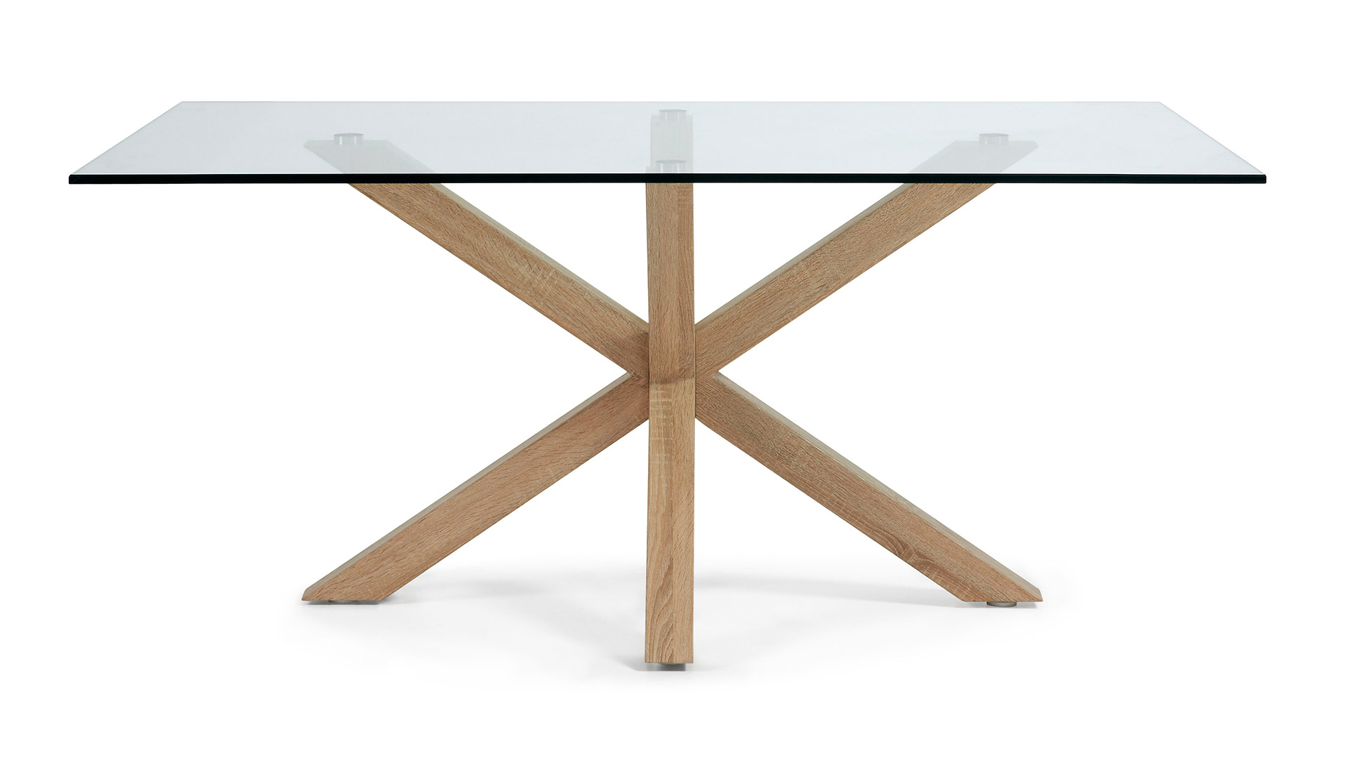 Elegante tavolo di design caratterizzato dalla base in acciaio effetto legno naturale e dal top in vetro temperato, per la tua sala da pranzo non potrai che scegliere Dumbar legno!
