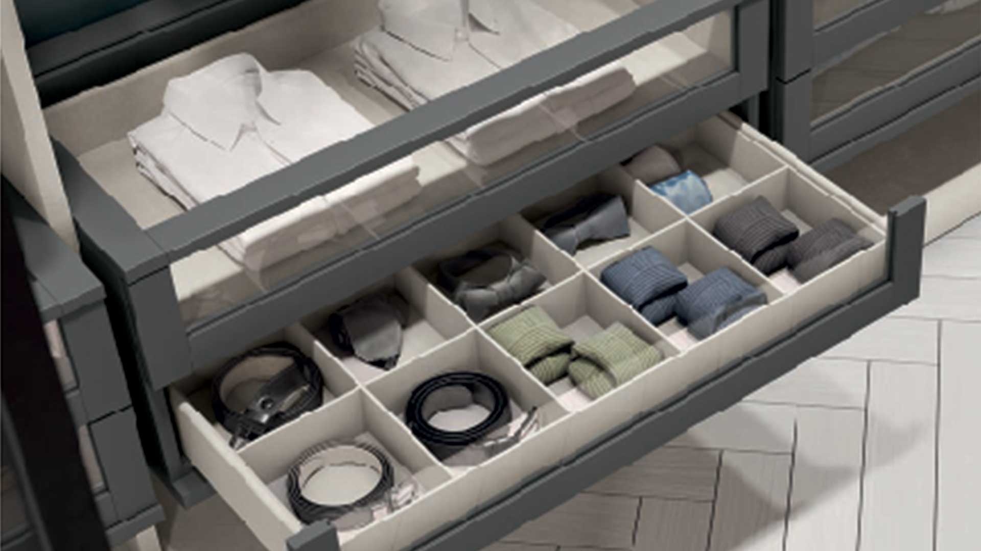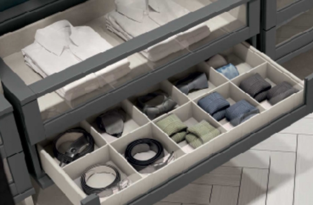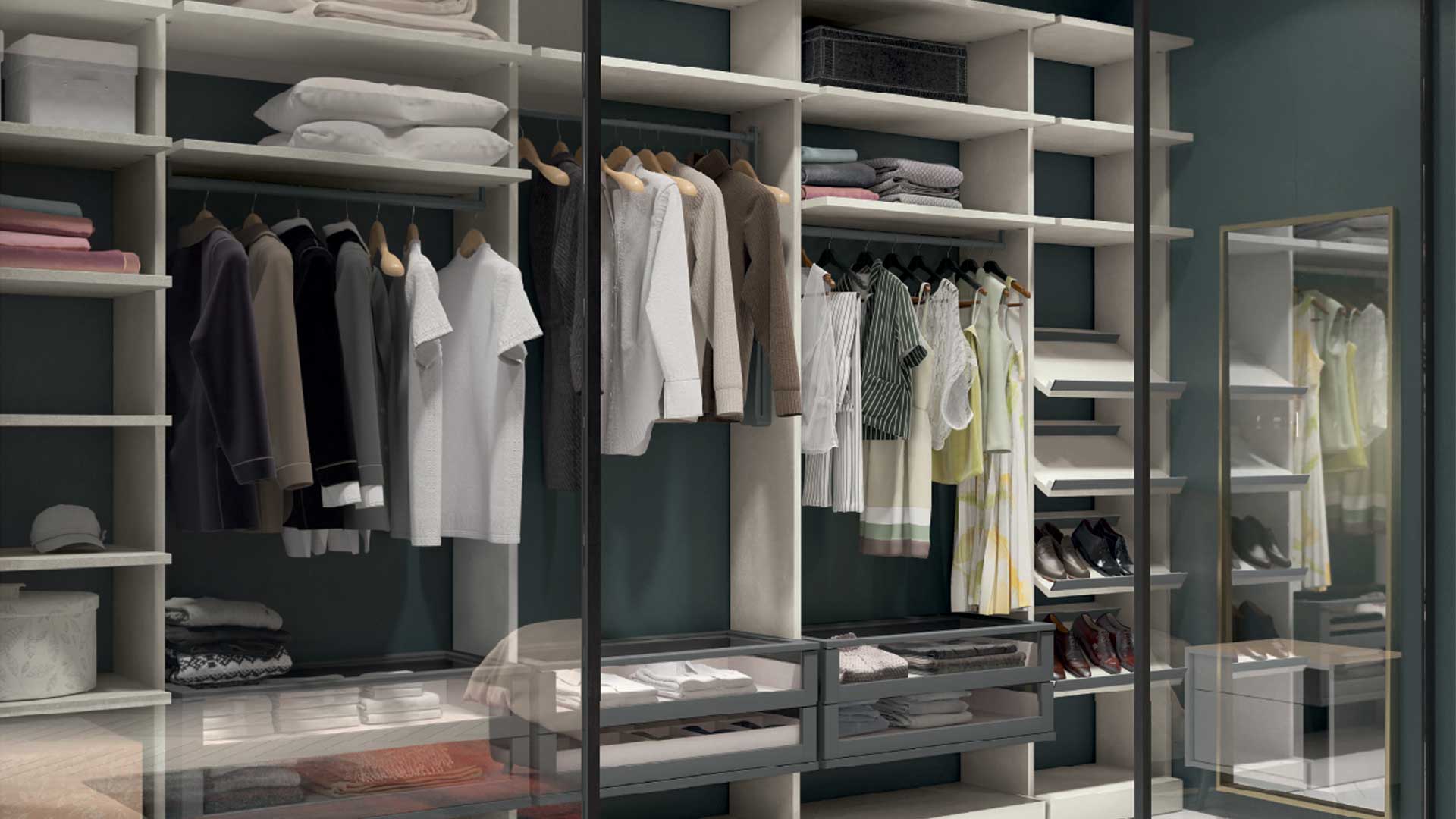 Progettala su misura in base agli spazi che hai a disposizione e scegli liberamente quantità, tipologie di moduli, materiali e finiture per comporre la cabina armadio dei tuoi sogni.
