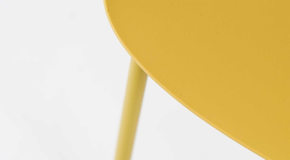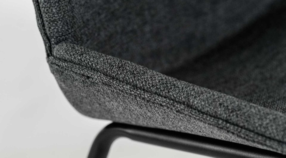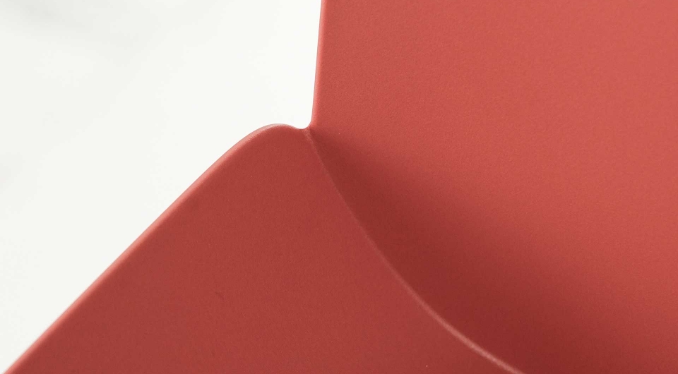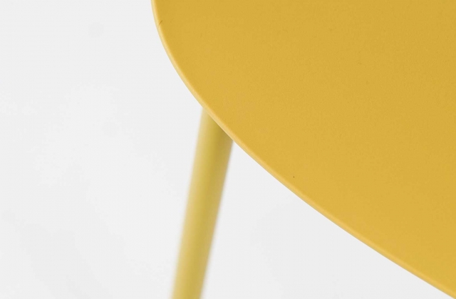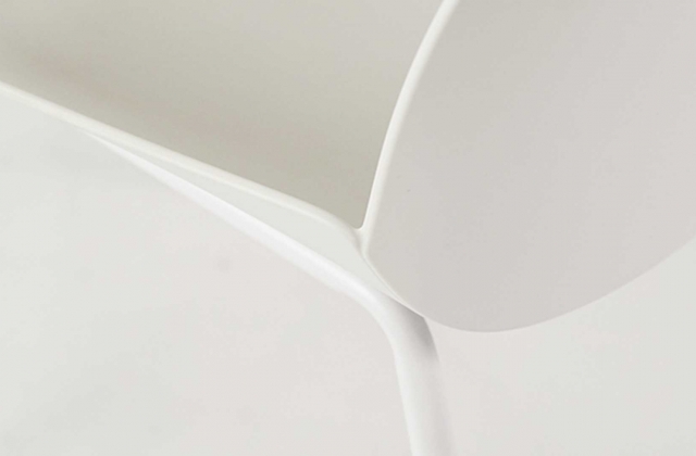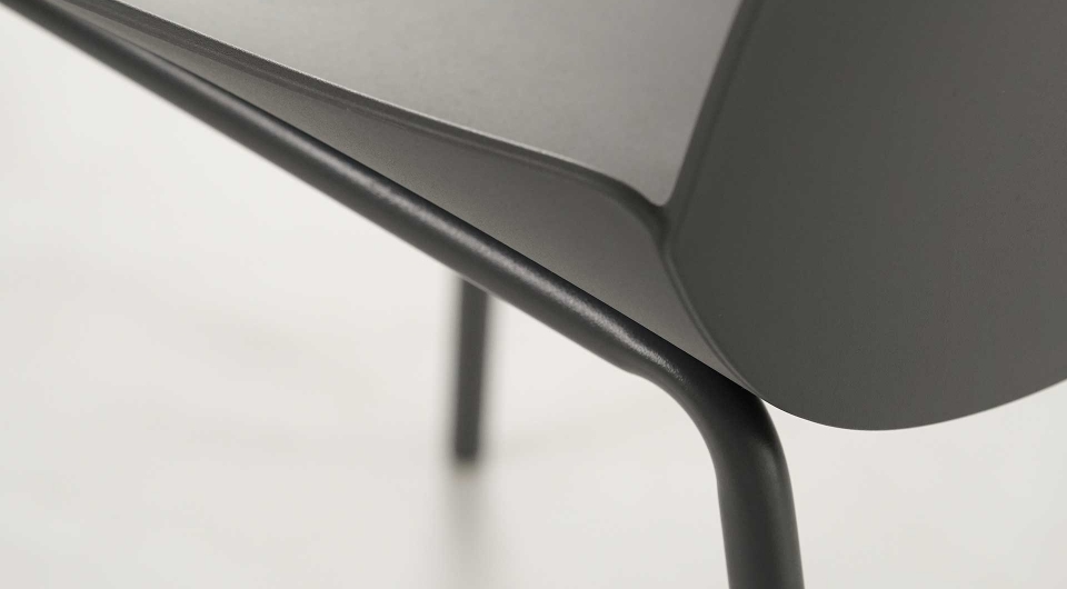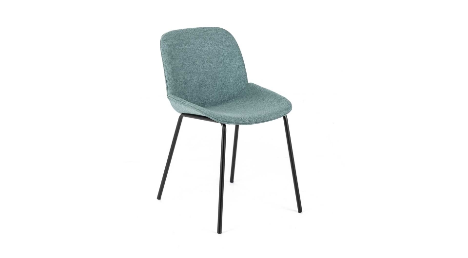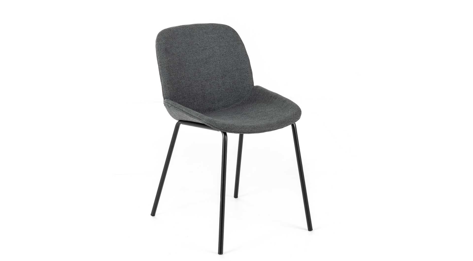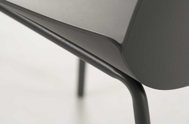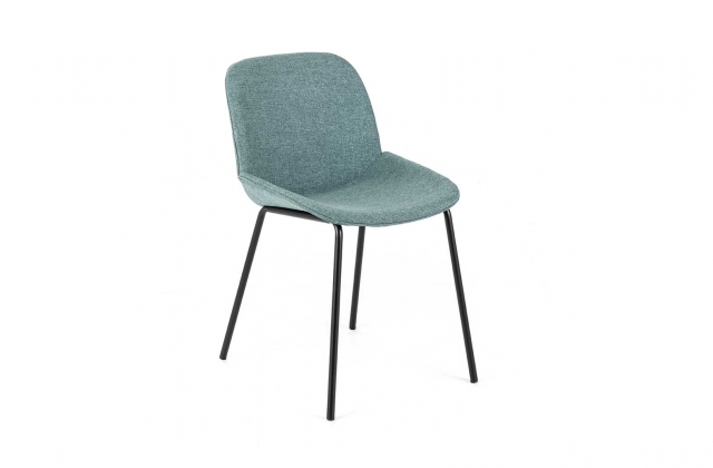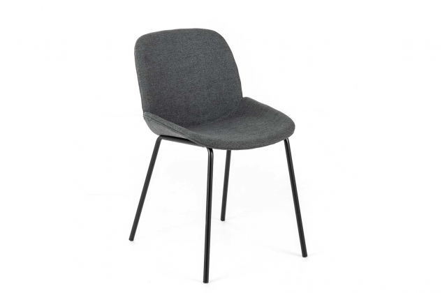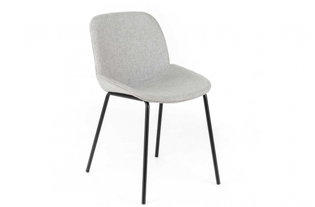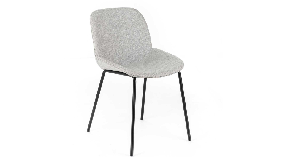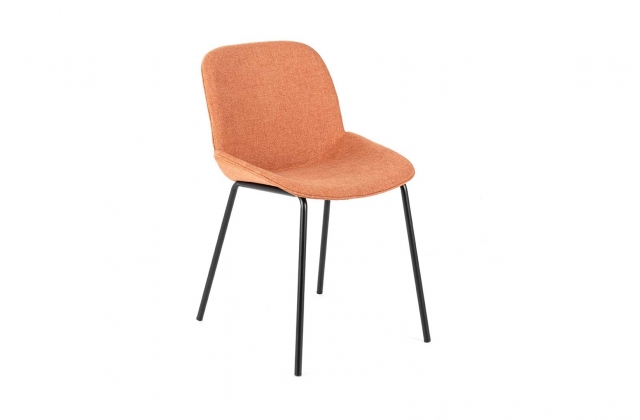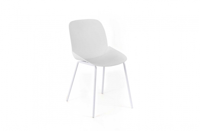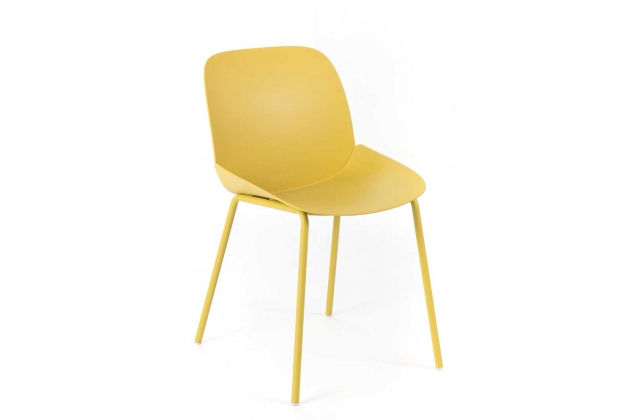 Sedia con struttura in polipropilene e gambe in metallo, disponibile anche in versione con rivestimento in tessuto.
