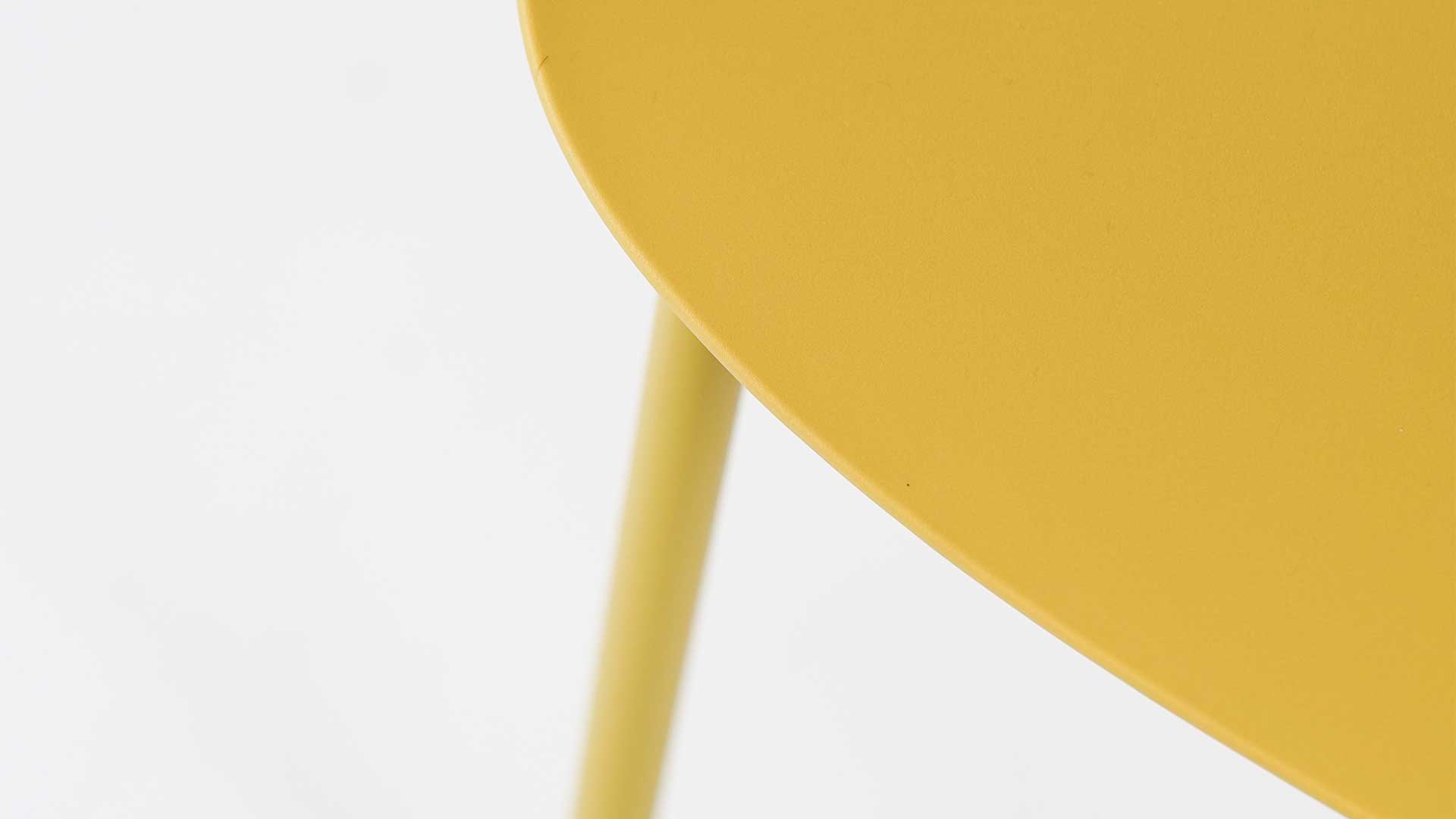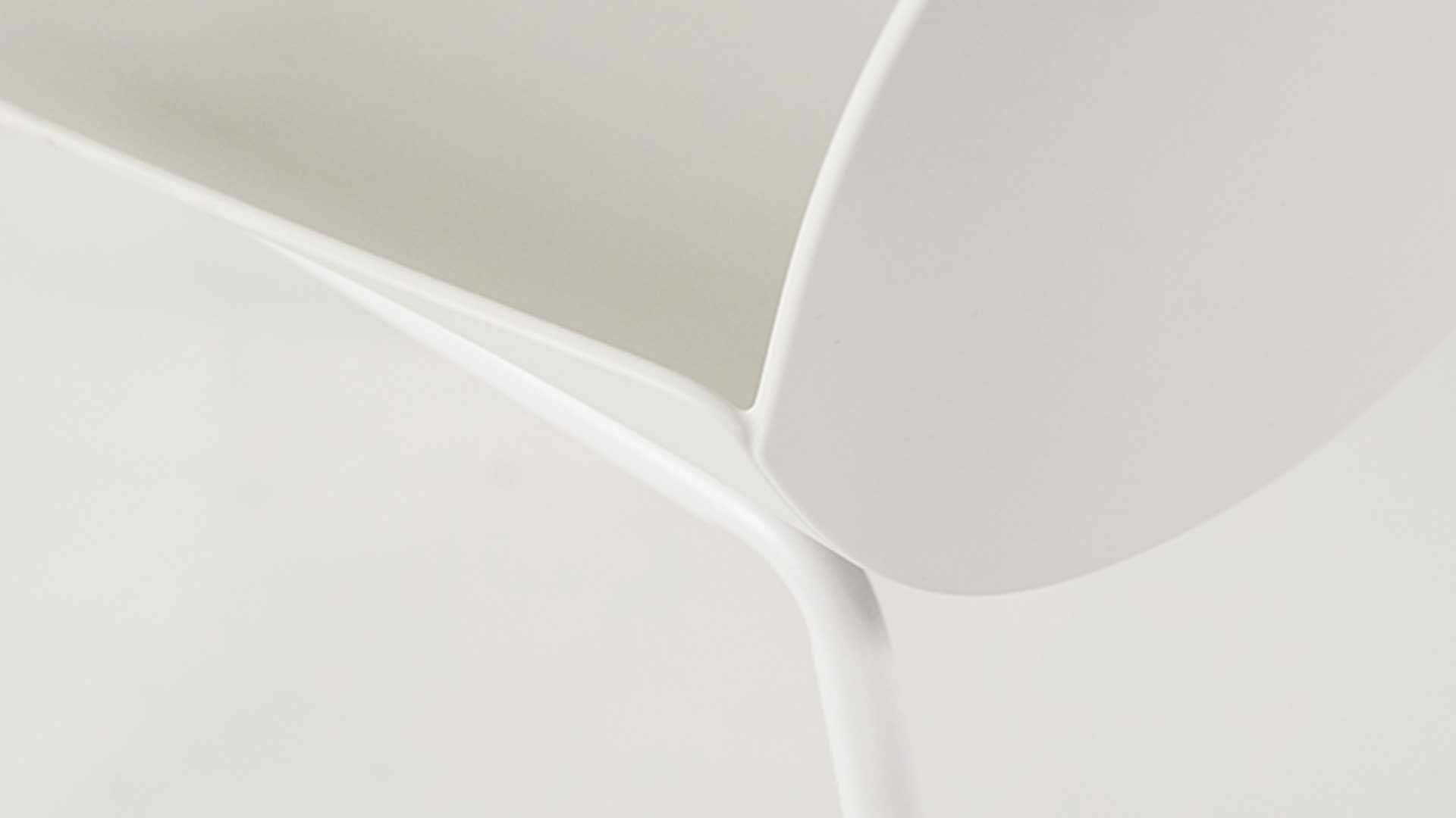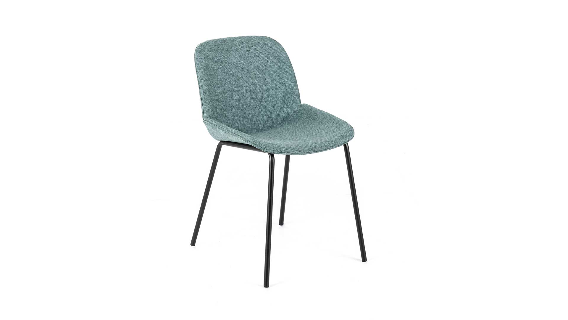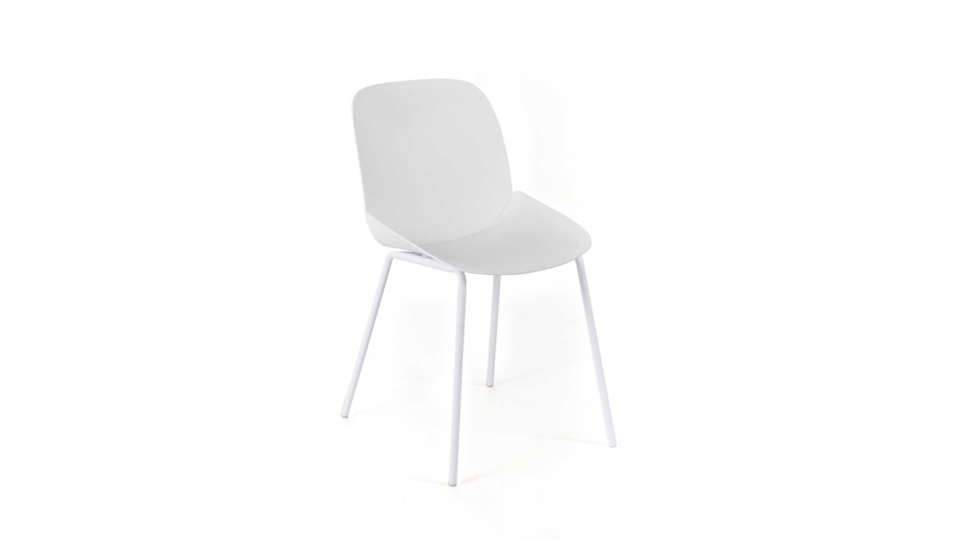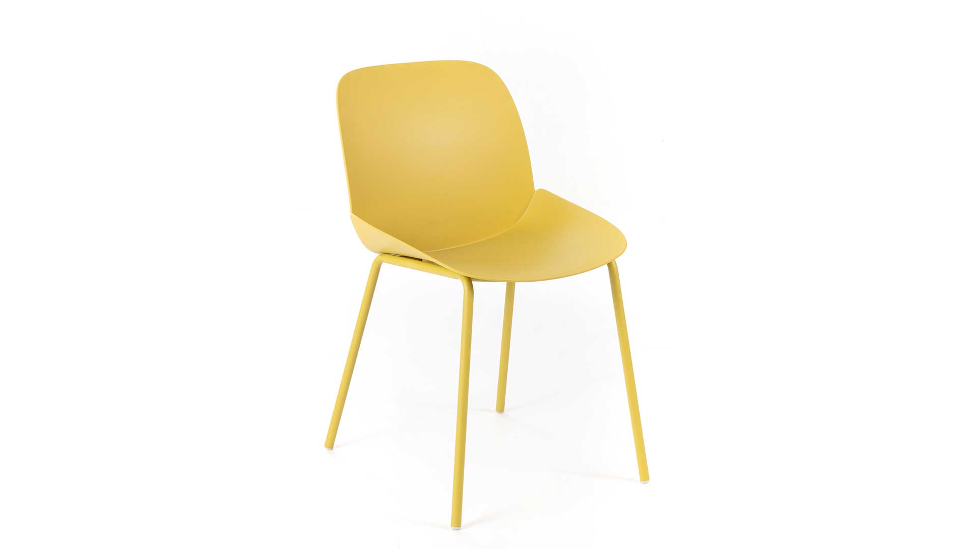 Sedia con struttura in polipropilene e gambe in metallo, disponibile anche in versione con rivestimento in tessuto.
