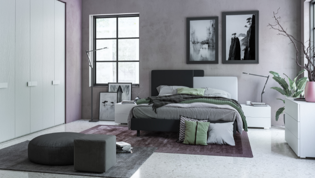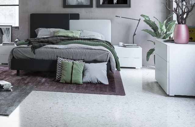 Gruppo notte composto da un comò e due comodini in finitura bianco frassinato.