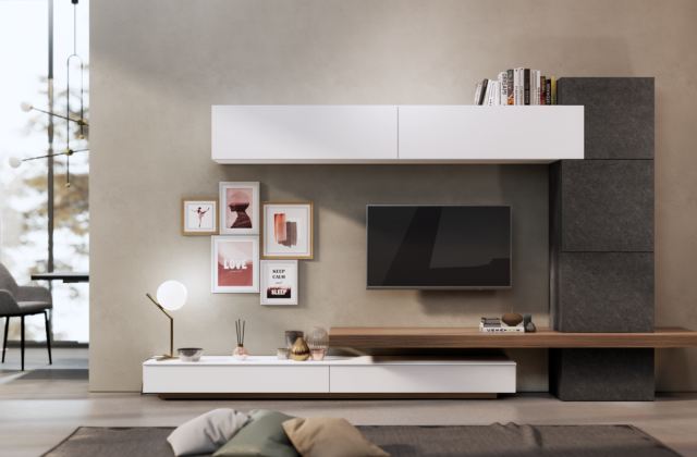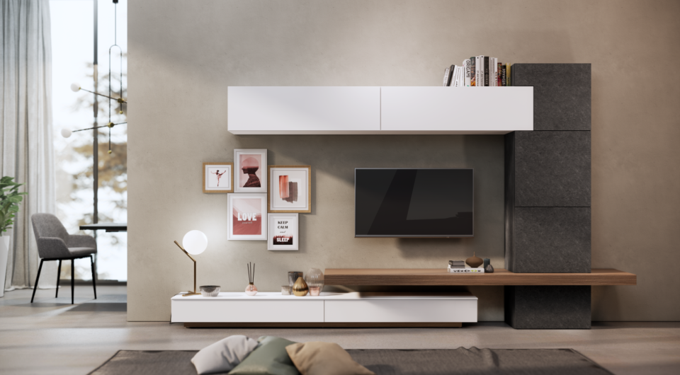 Il modello Gaia è ideale per creare una parete attrezzata su misura sulla base degli spazi a tua disposizione.