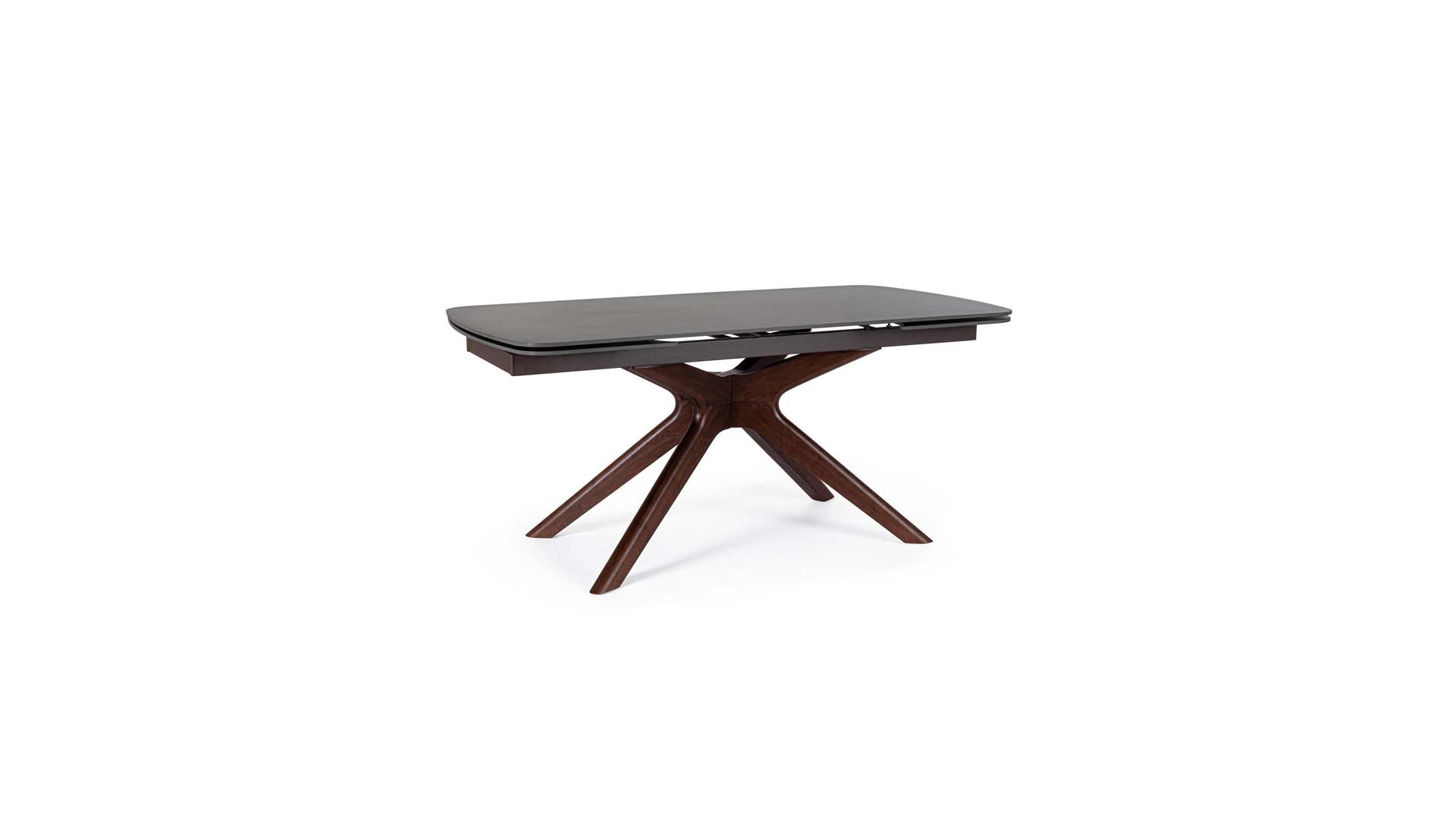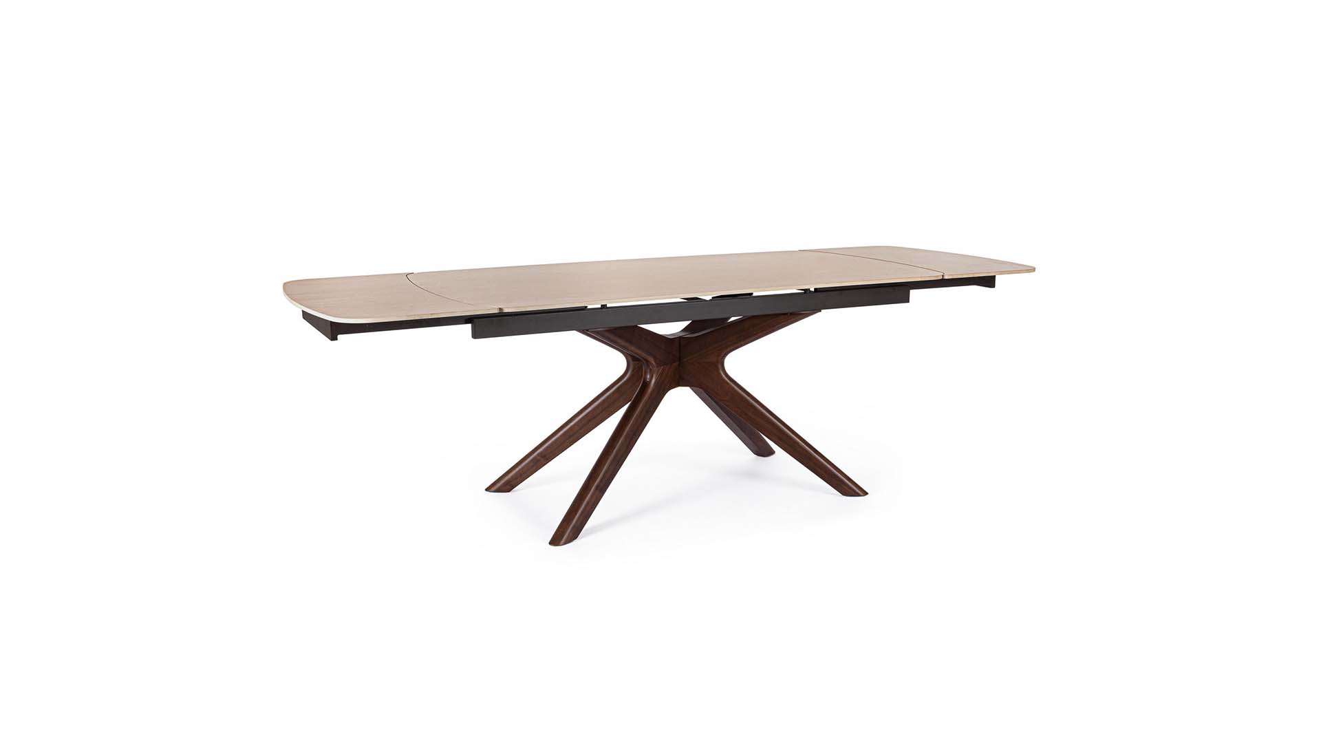 Il piano in gres porcellanato sovrasta delle bellissime gambe in legno di betulla impiallacciato che donano un’eleganza senza tempo, combinando estetica e funzionalità. La combinazione del gres porcellanato e del legno crea un look sofisticato e moderno che si adatta perfettamente a una sala da pranzo contemporanea.