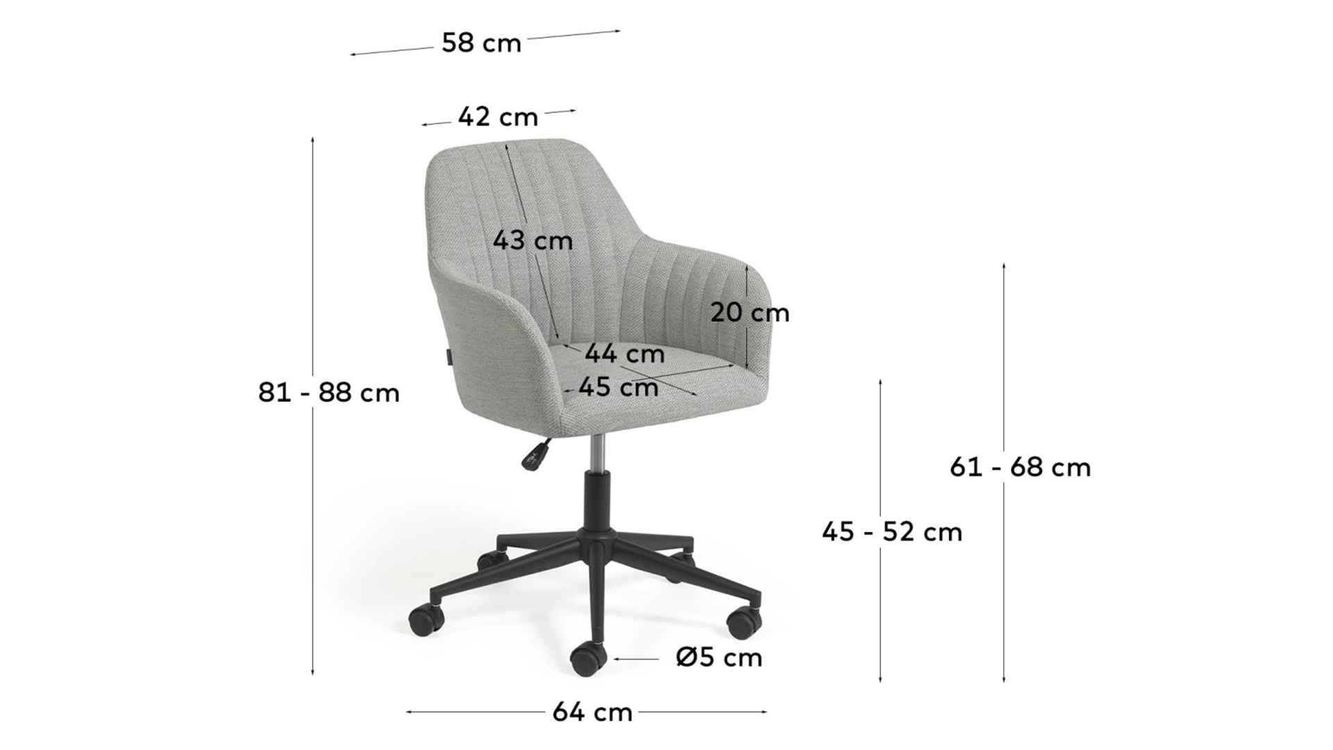 Struttura e piedi sono in poliuretano per assicurarti grande resistenza. Sceglila in grigio chiaro o grigio scuro e completa l'arredo del tuo studio.