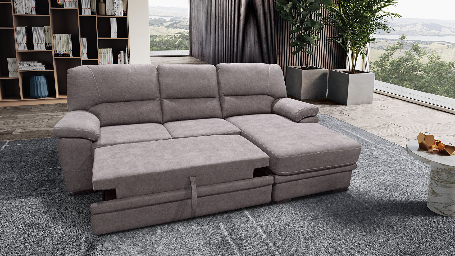 Sarà molto difficile resistere al richiamo della sua invitante chaise longue. Jhonn è un divano con una panchetta letto estraibile che sarà in grado di conquistare il tuo salotto senza alcuno sforzo da parte tua: amore a prima seduta.