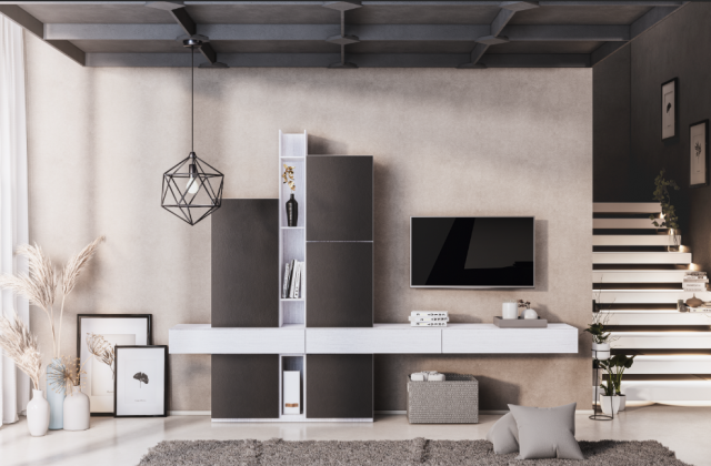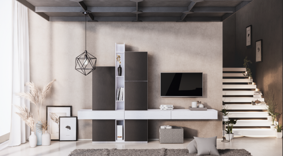 Il modello Kento è ideale per creare una parete attrezzata su misura sulla base dei tuoi spazi disponibili.