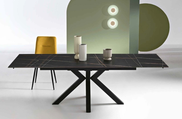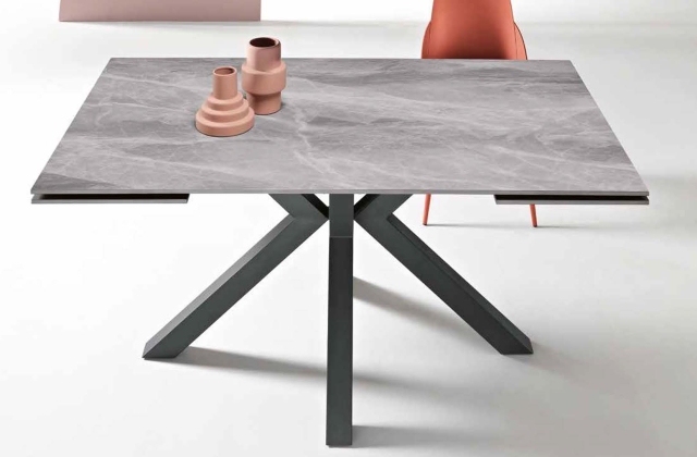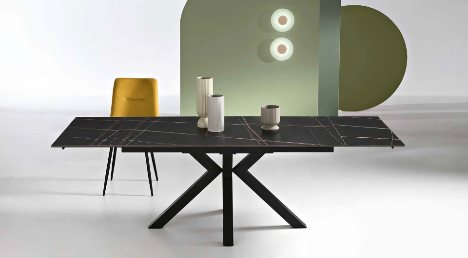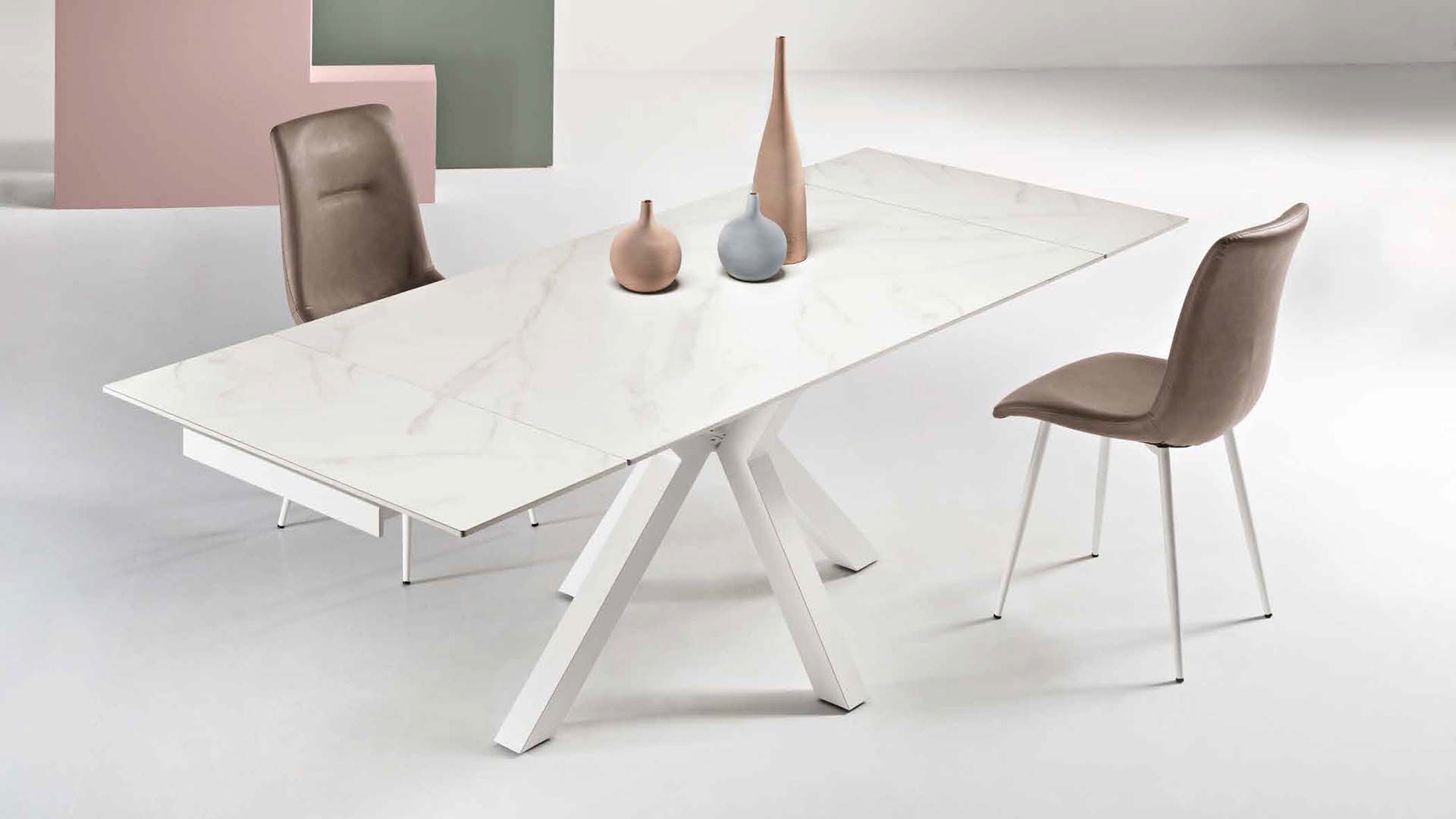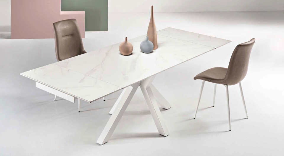 Lake è un elegante tavolo allungabile con struttura in acciaio verniciato per una maggiore robustezza e stabilità.