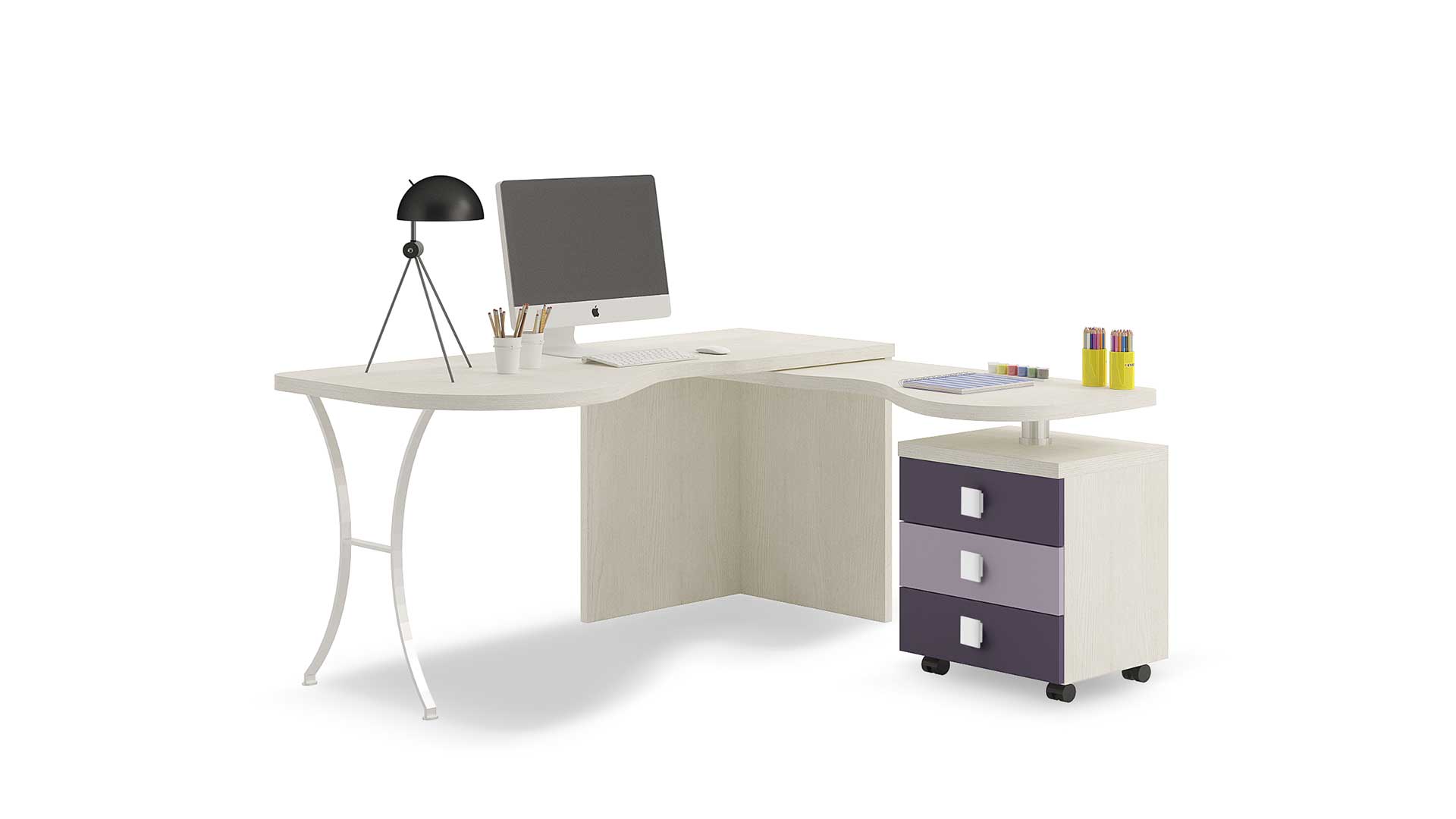 La sua superficie ampia e liscia è adatta per studiare con comodità e la presenza di una cassettiera per riporre penne, matite, quaderni e libri la rendono estremamente comoda e in grado di soddisfare le esigenze dei nostri giovani esploratori.