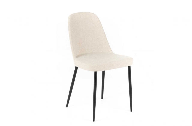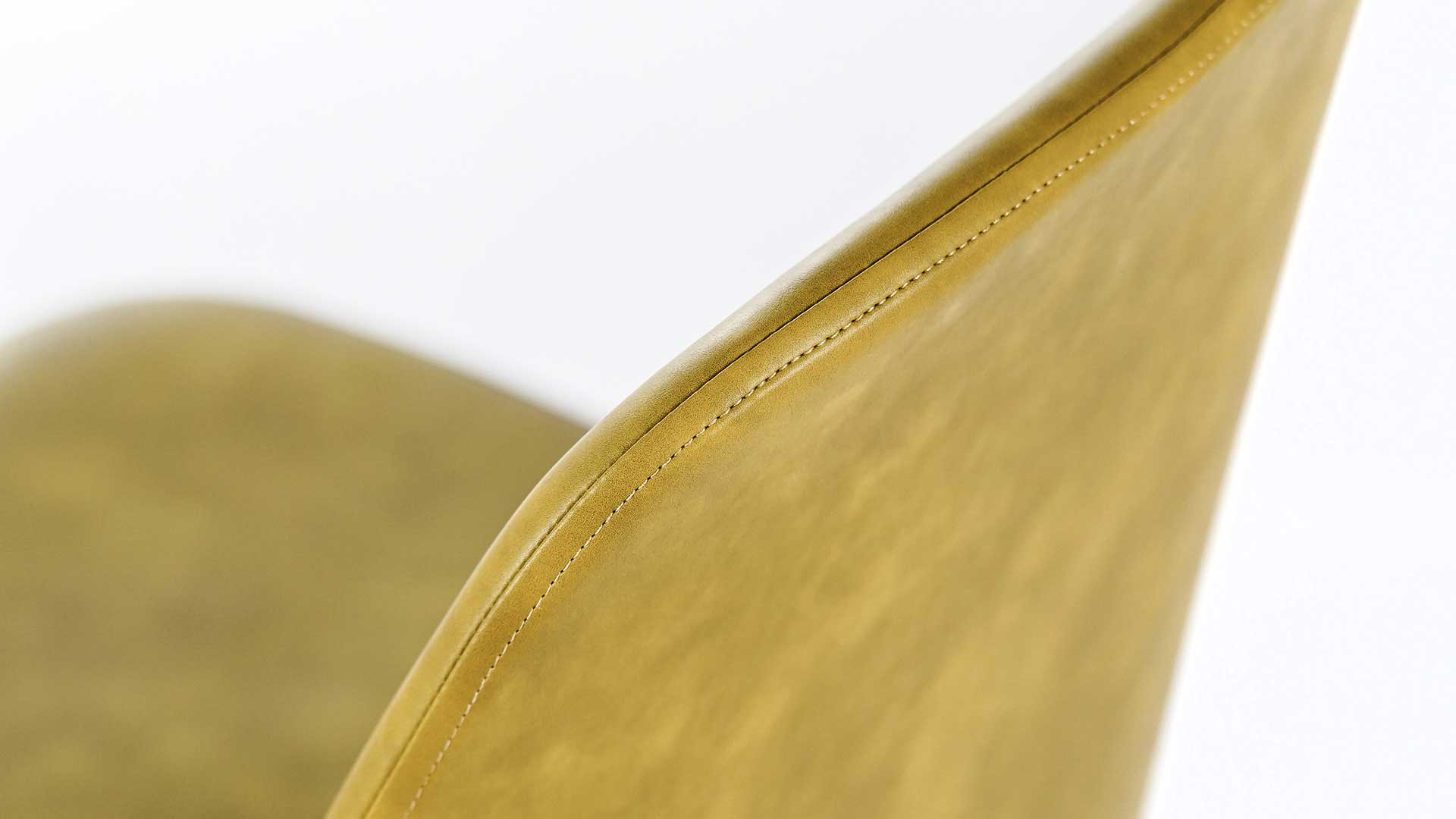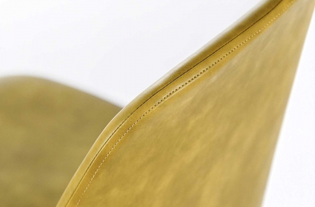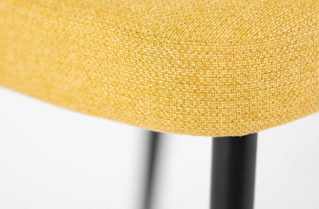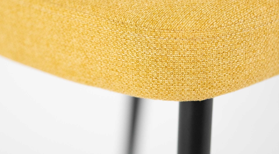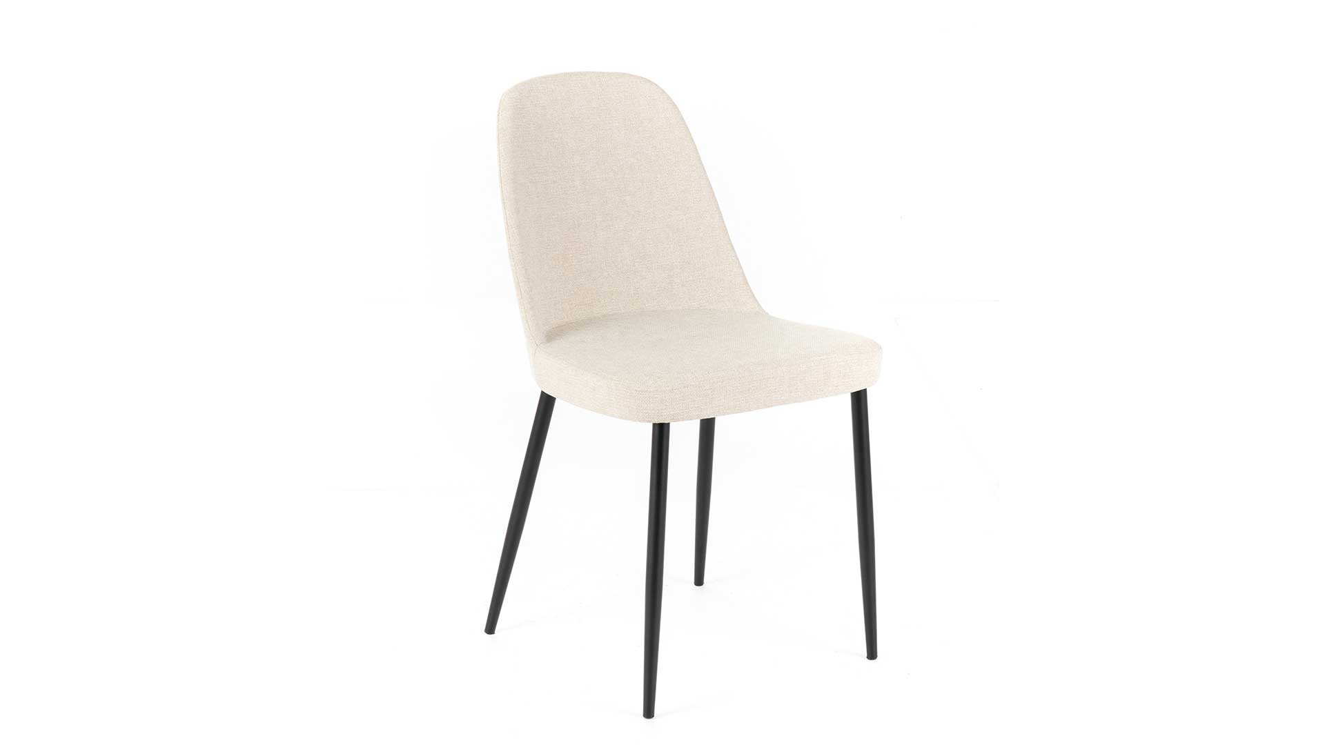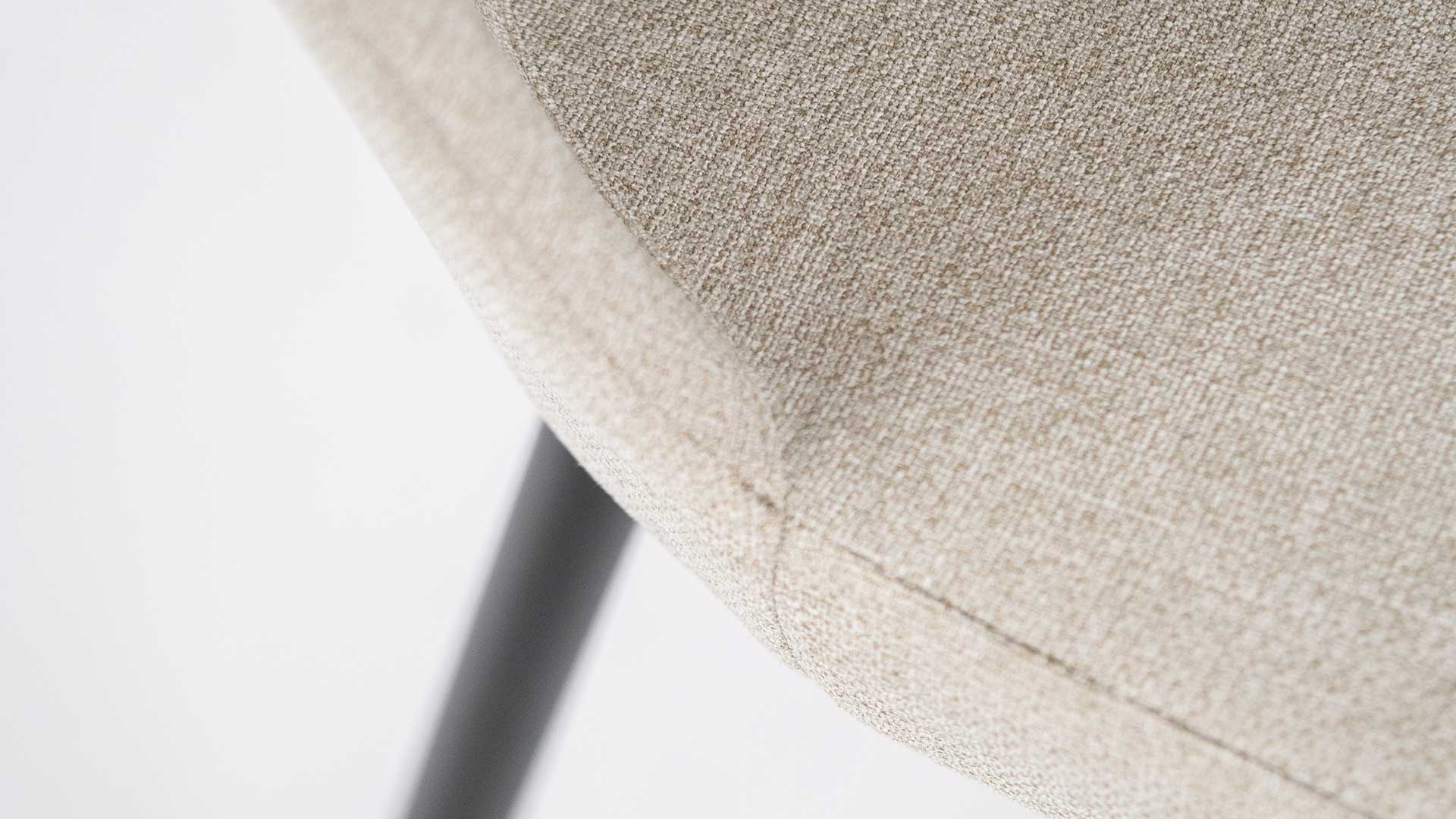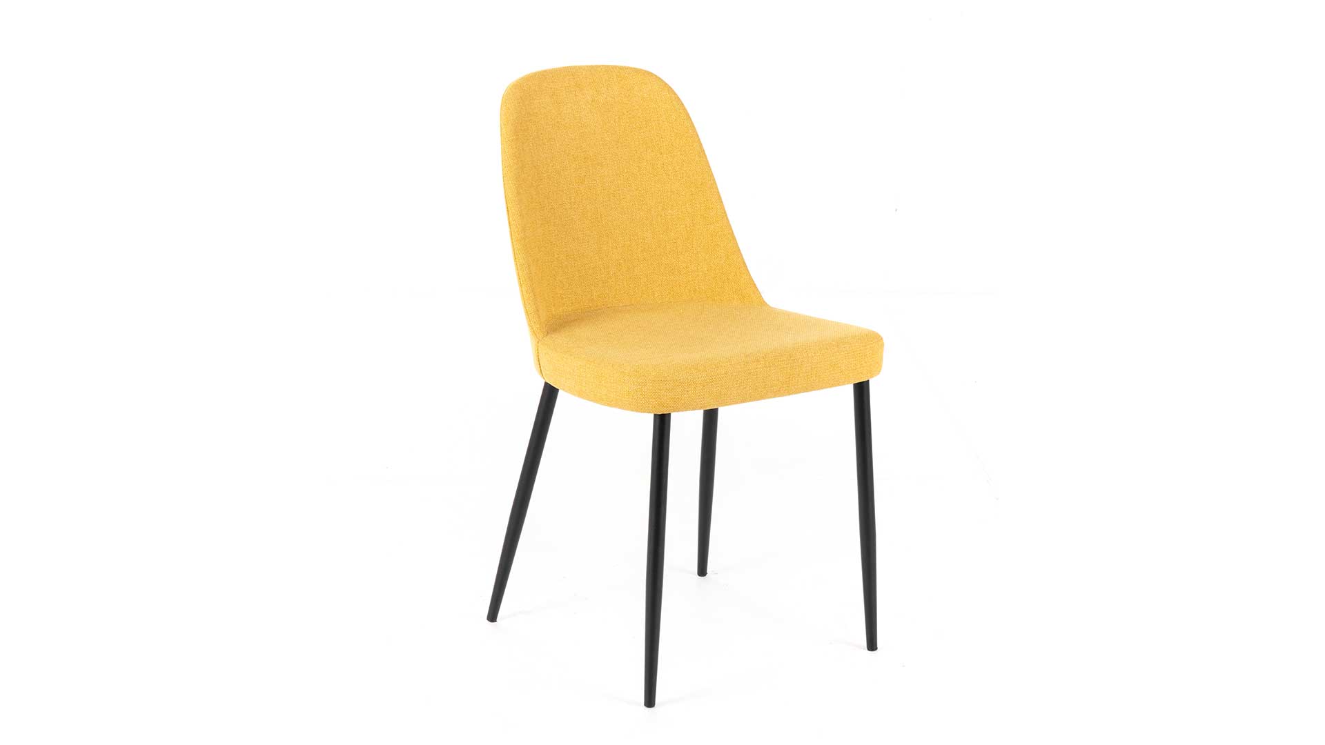 Sedia con gambe in metallo e struttura in polipropilene, realizzata con rivestimento in tessuto o in similpelle soft touch.
