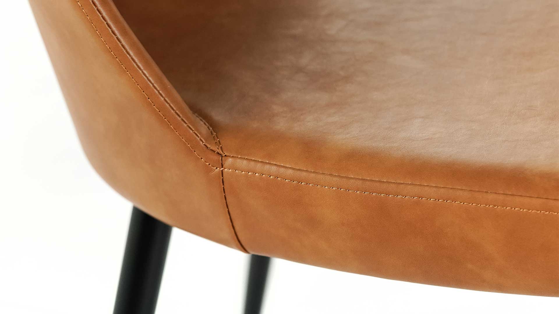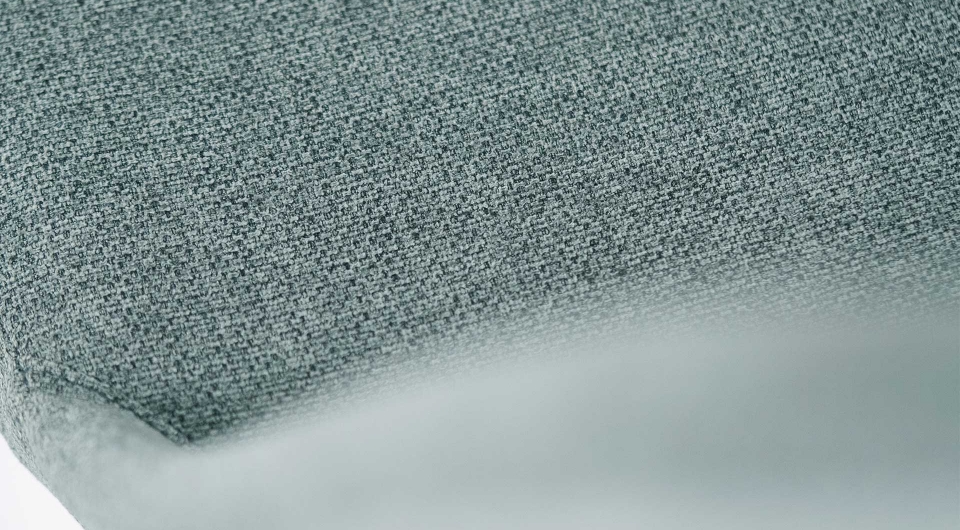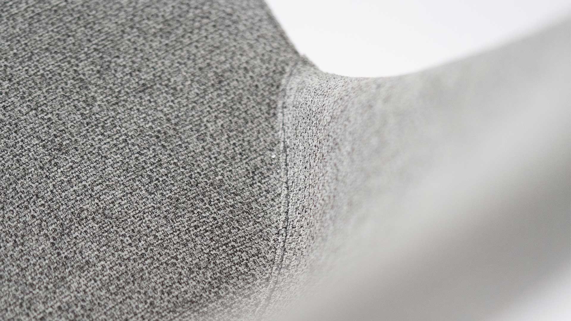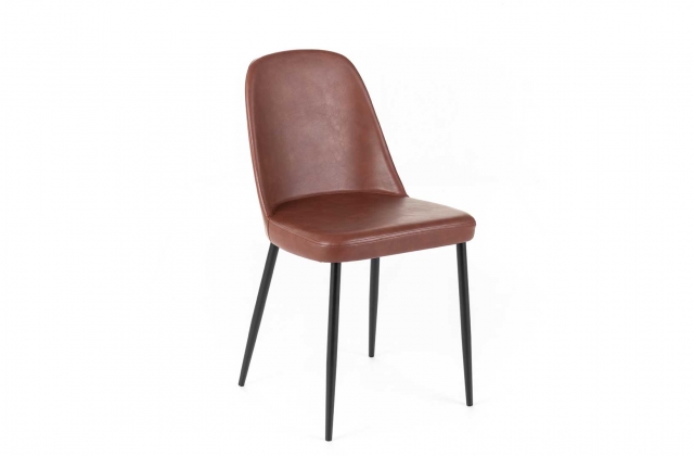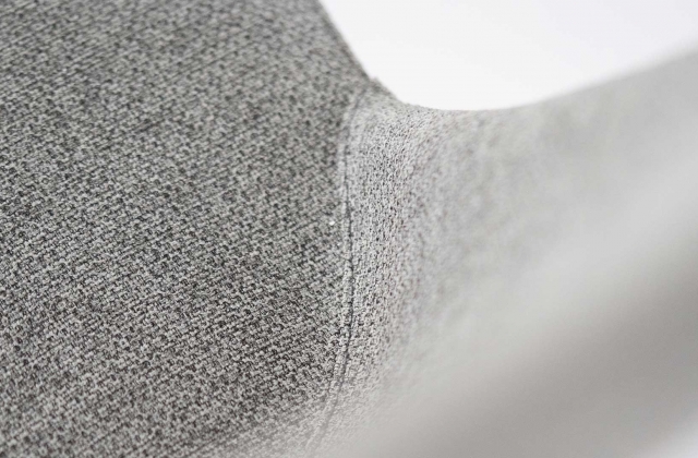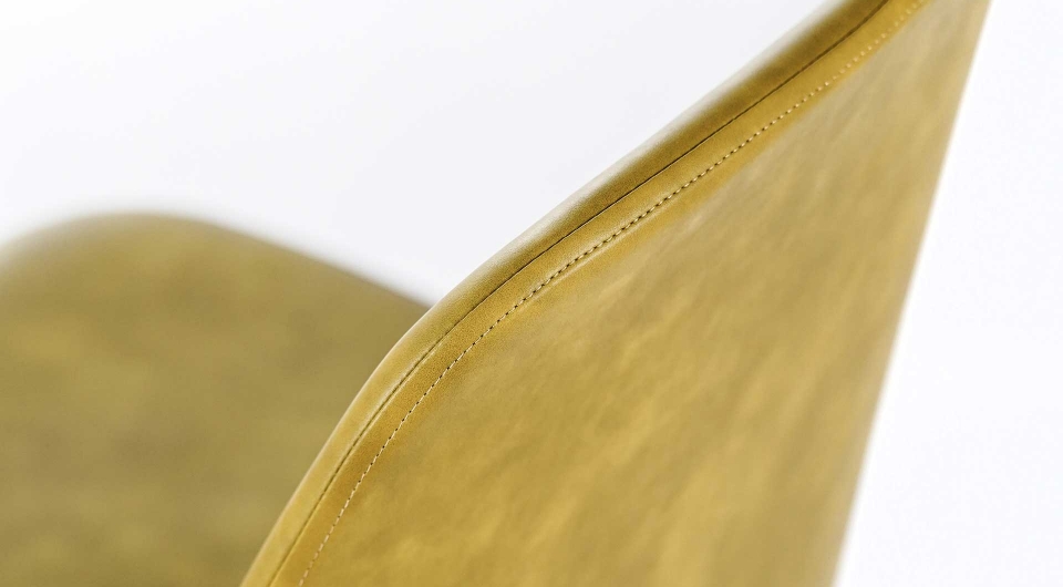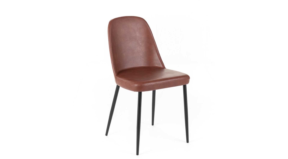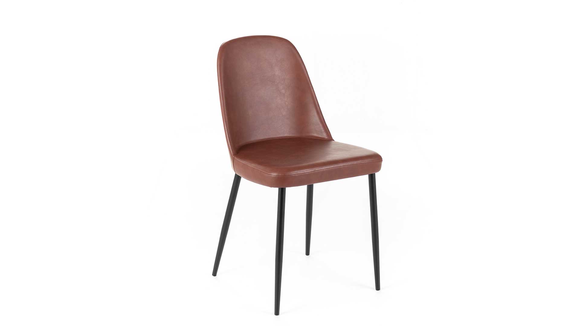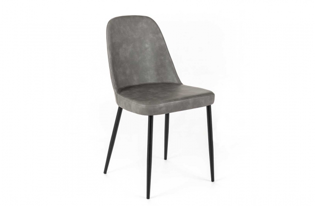 Sedia con gambe in metallo e struttura in polipropilene, realizzata con rivestimento in tessuto o in similpelle soft touch.