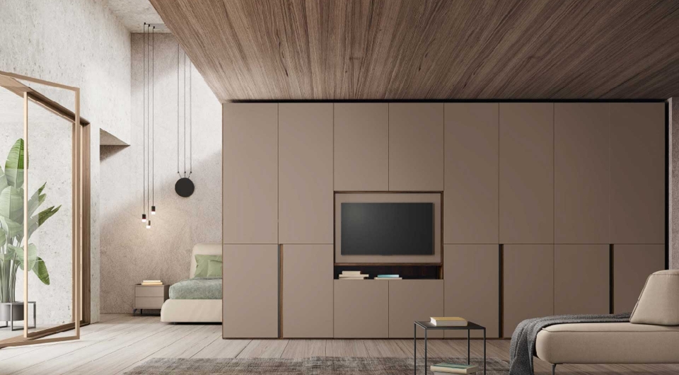Allora la soluzione giusta è l'armadio Lenor ad ante battenti. La sua caratteristica principale è data dalla presenza di un vano Tv apribile e orientabile verso destra o sinistra. È inoltre dotato di una pratico vano dove è