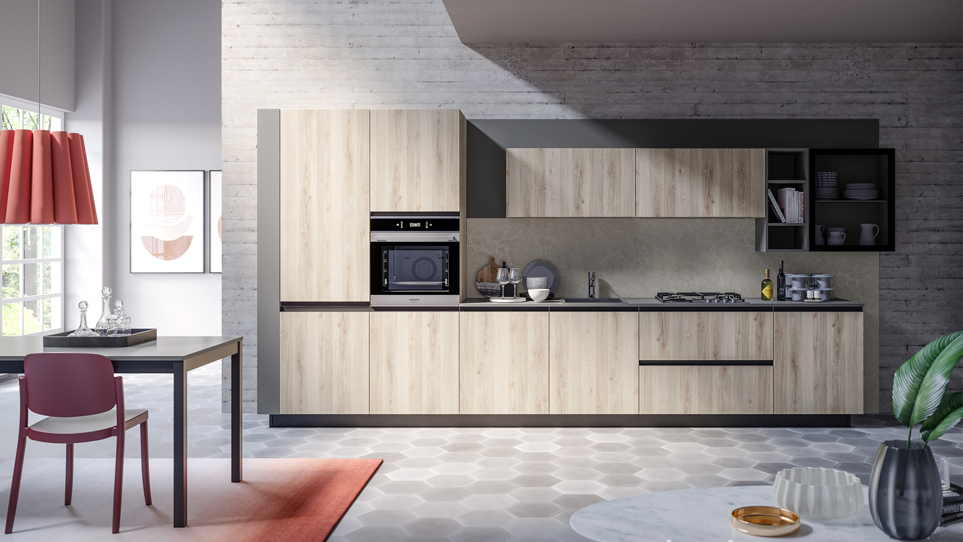 La cucina lineare è la soluzione ideale per chi a poco spazio e deve sfruttarlo in maniera efficiente.