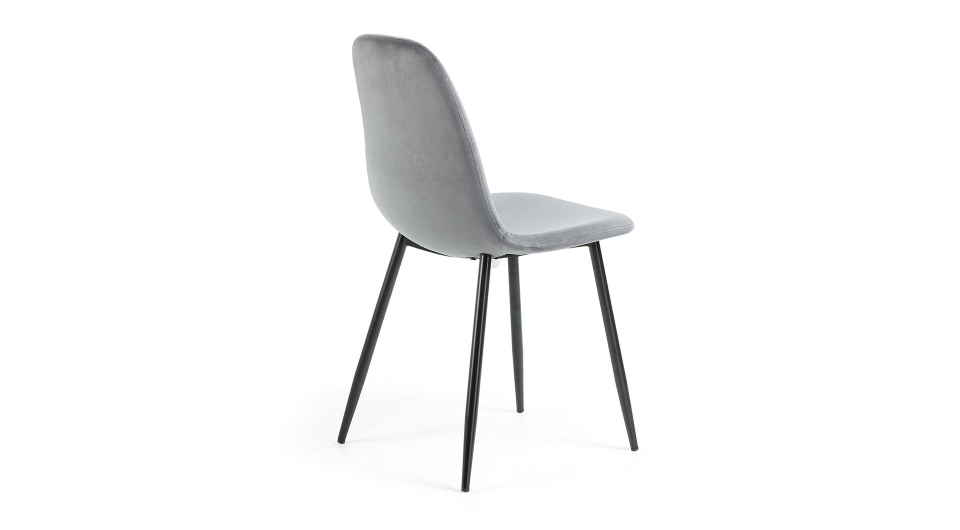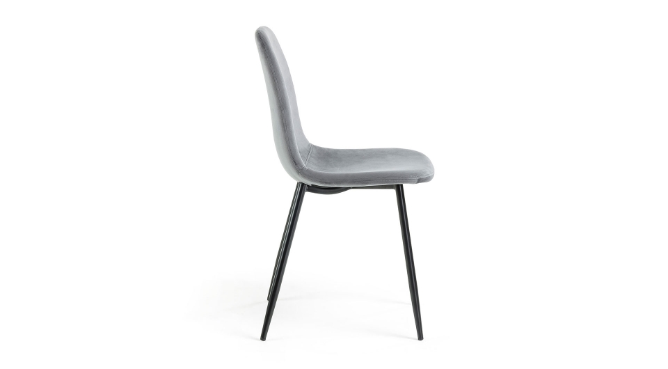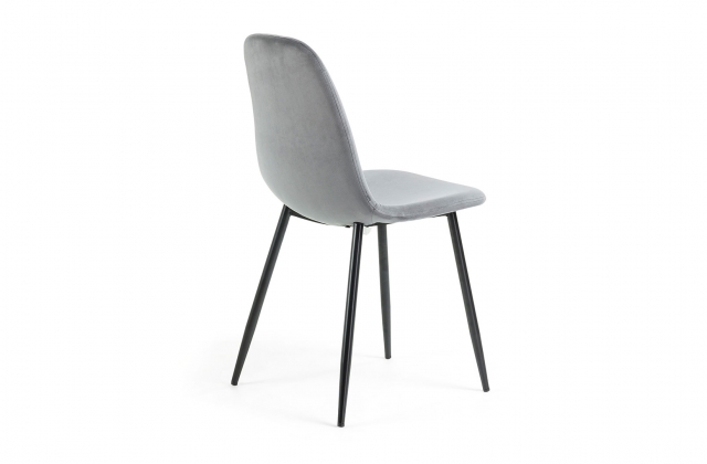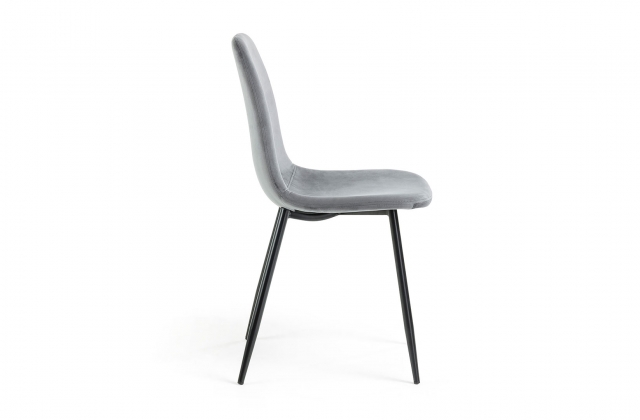 Sedia con seduta in velluto e struttura in metalli, disponibile in diversi colori.