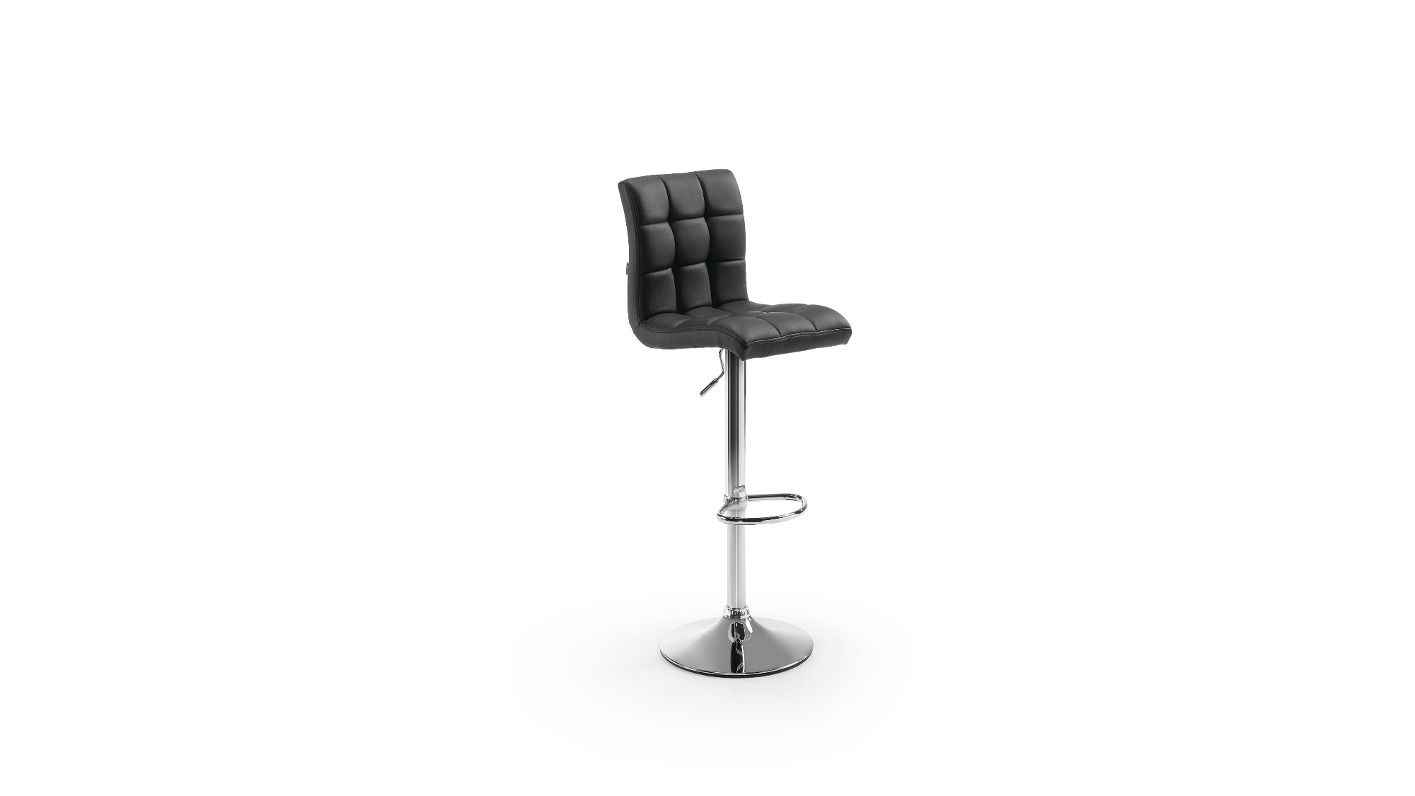 Sgabello girevole in polipropilene, con seduta imbottita e rivestita in ecopelle e gamba cromata dotata di meccanismo di sollevamento. Disponibile in vari colori.