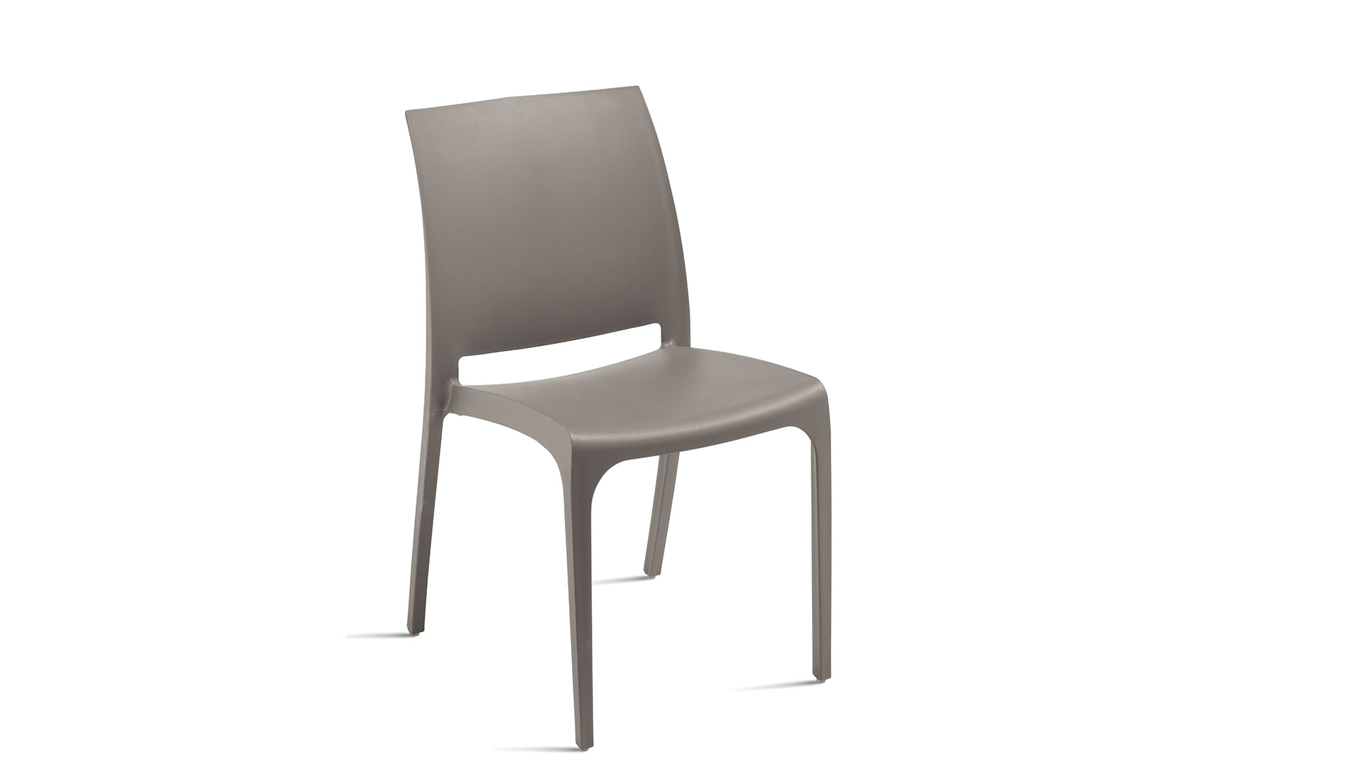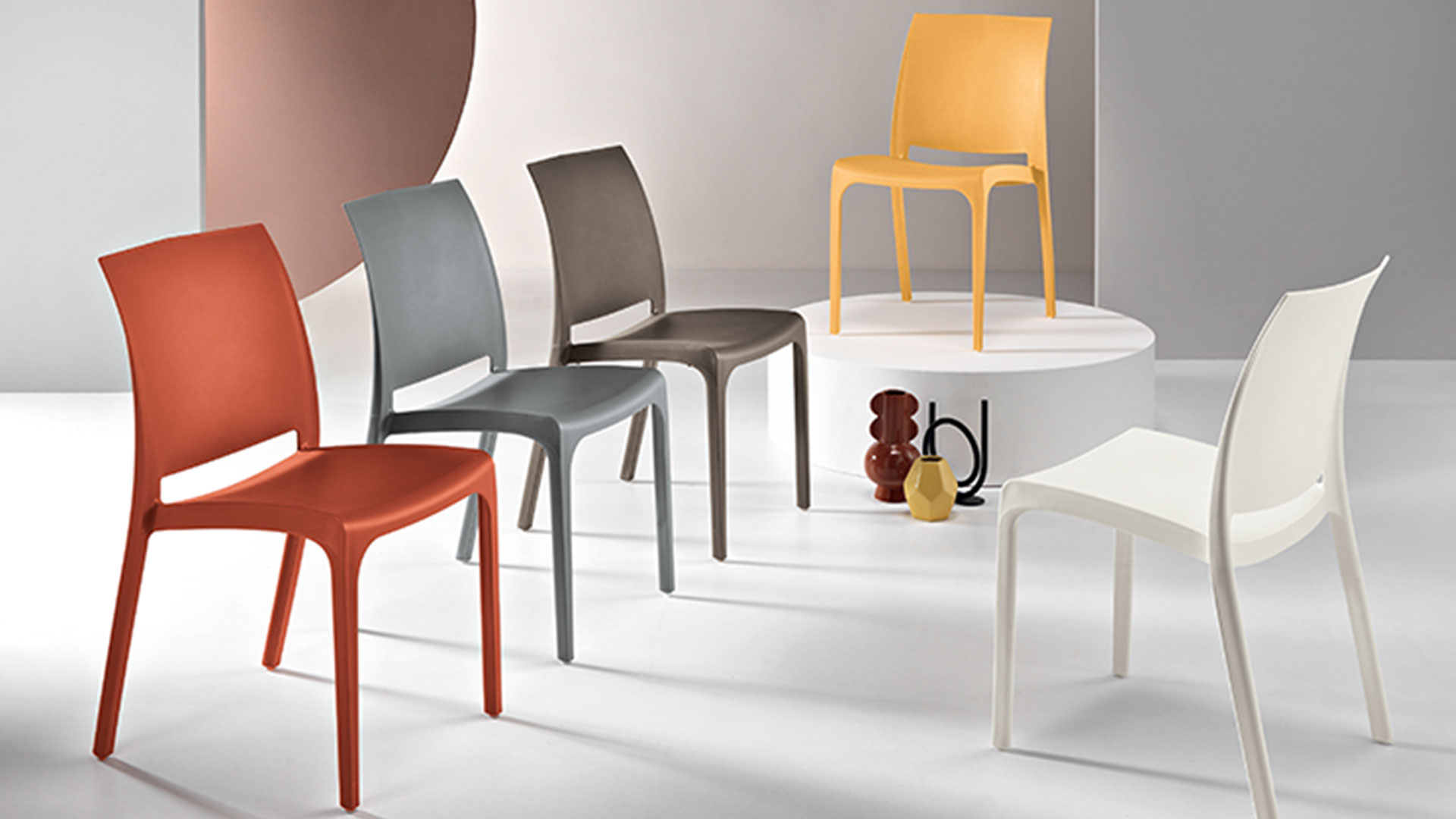 Sedia impilabile realizzata in polipropilene, disponibile in diversi colori.
