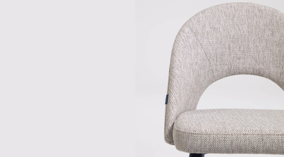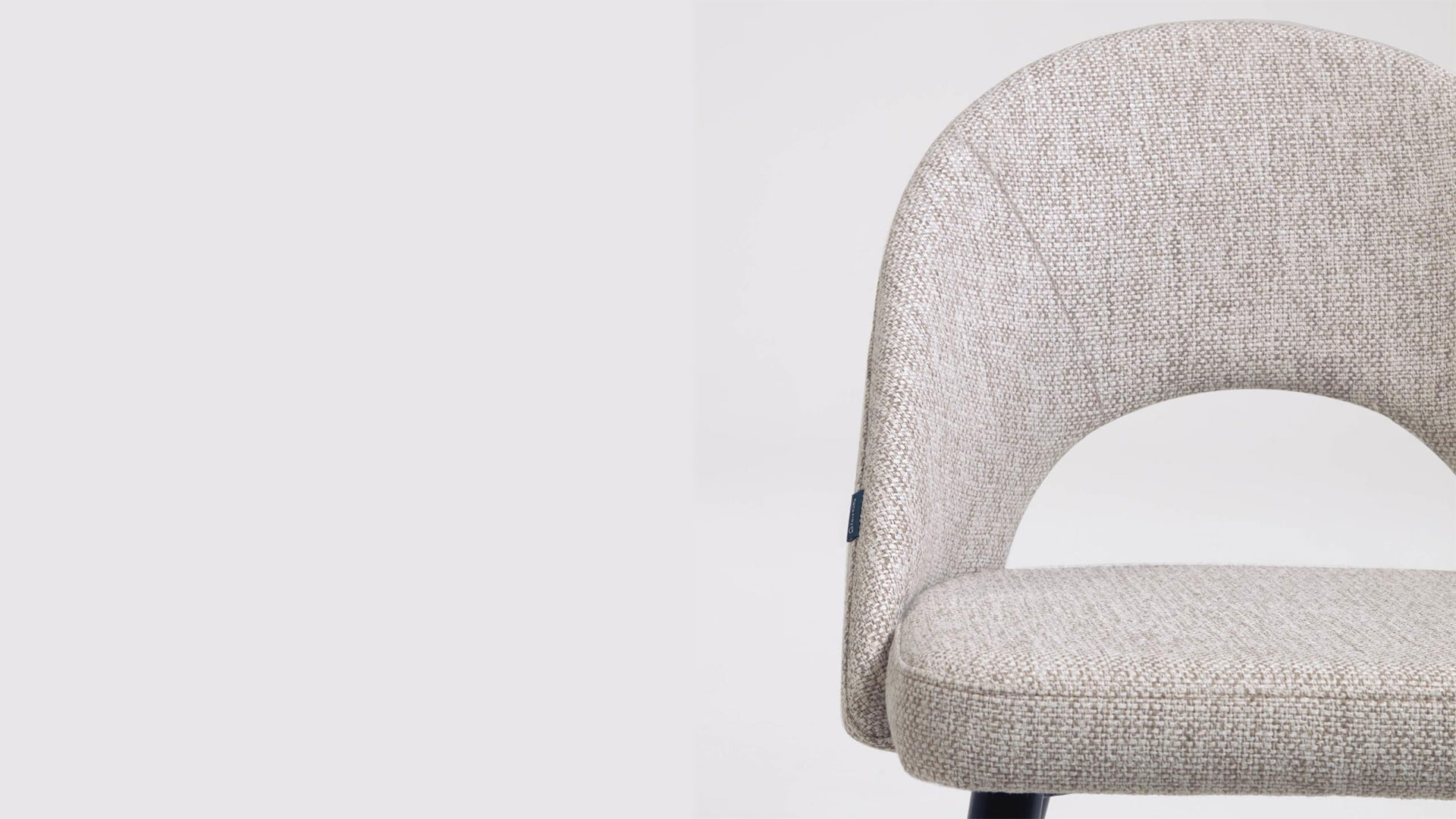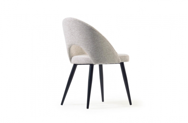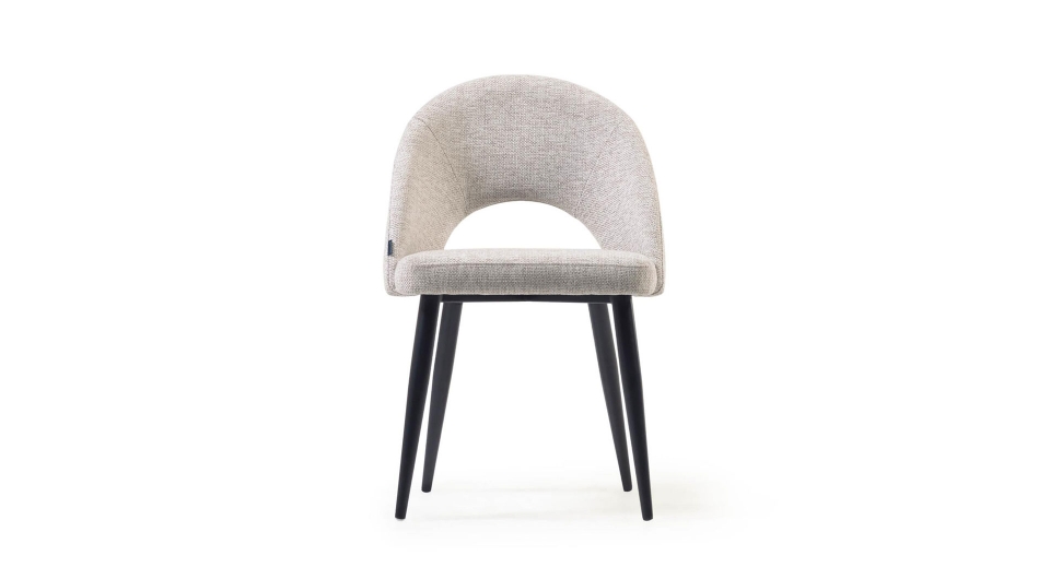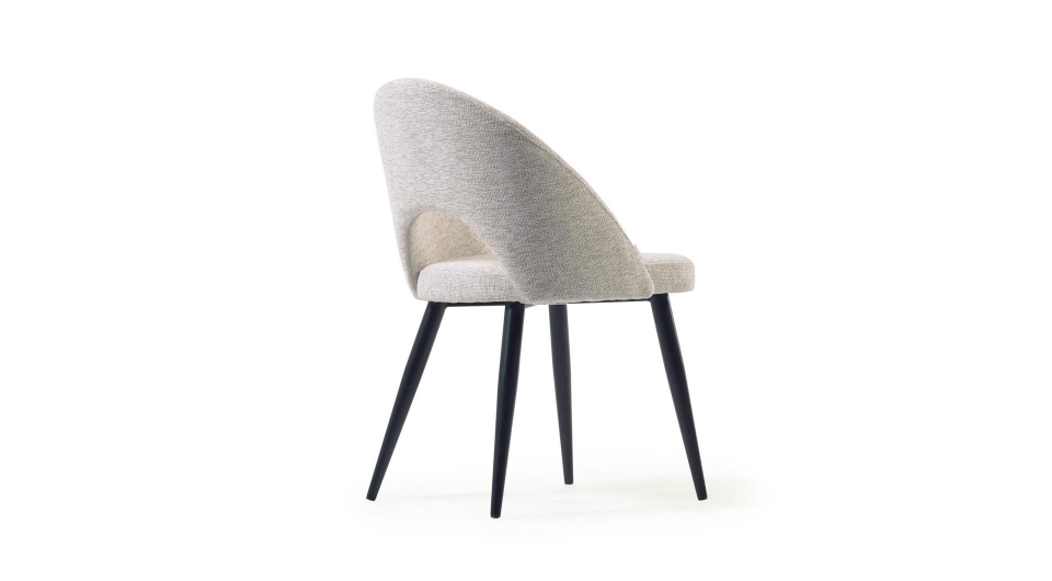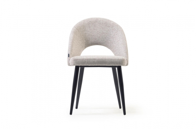 Sedia in ciniglia e gambe in acciaio, disponibile nei colori verde o beige.