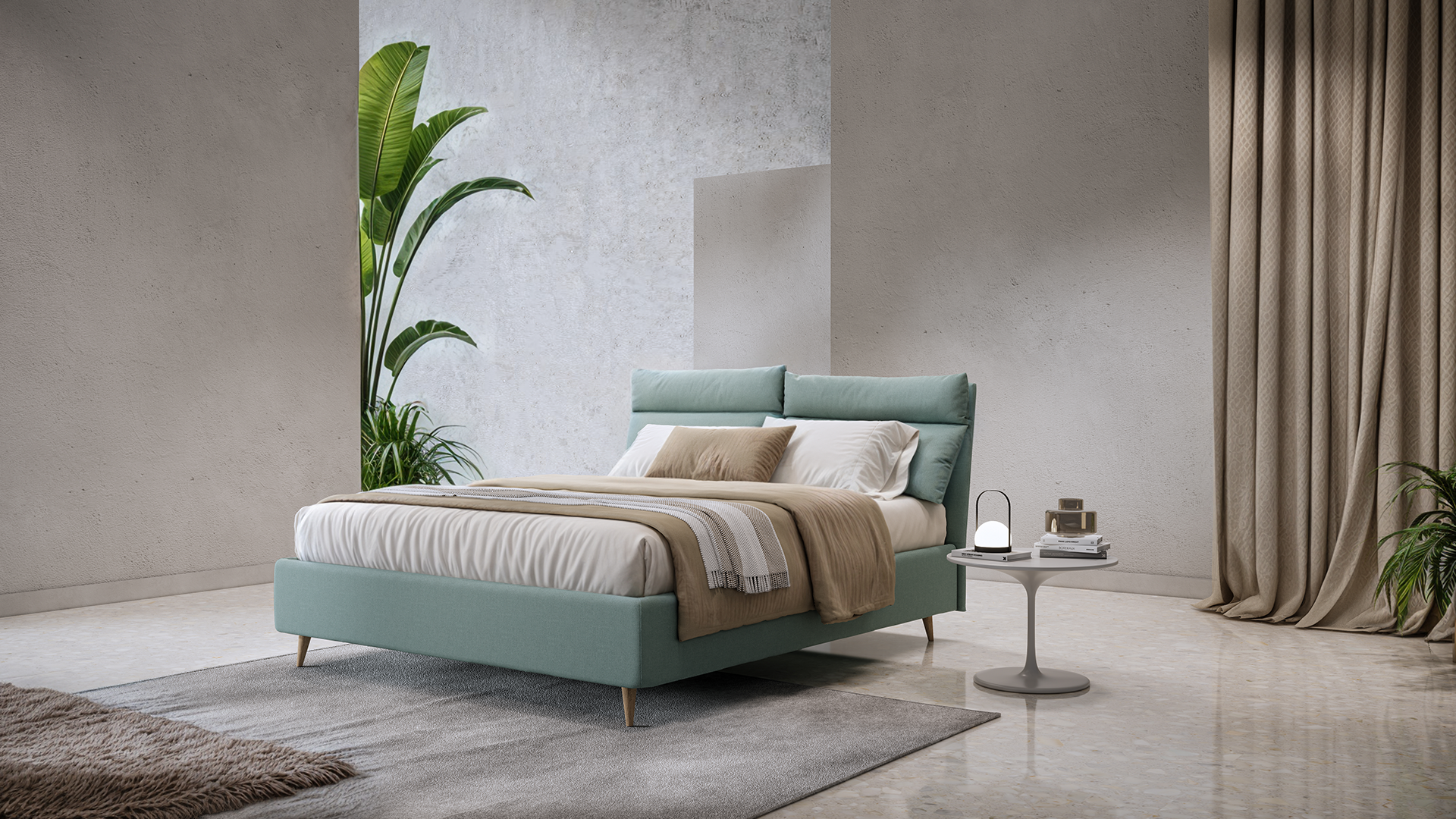Caratteristiche principali sono la testata del letto composta da due cuscini distinti, ideali per garantire il massimo comfort e supporto, e il giroletto imbottito che aggiunge un ulteriore strato di comfort e stile. Realizzato con materiali di alta qualità, il rivestimento morbido e resistente è anche completamente sfoderabile.