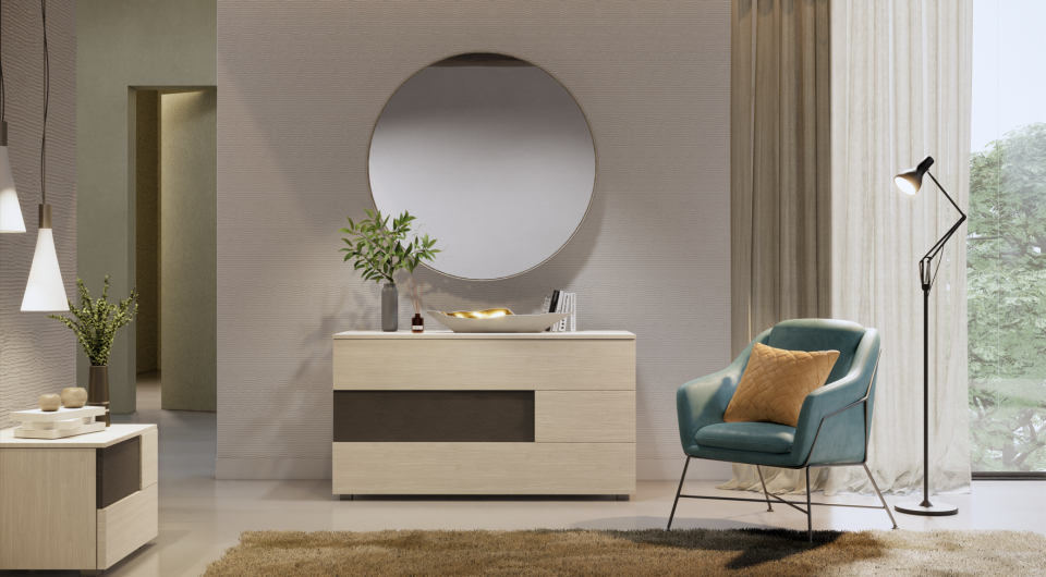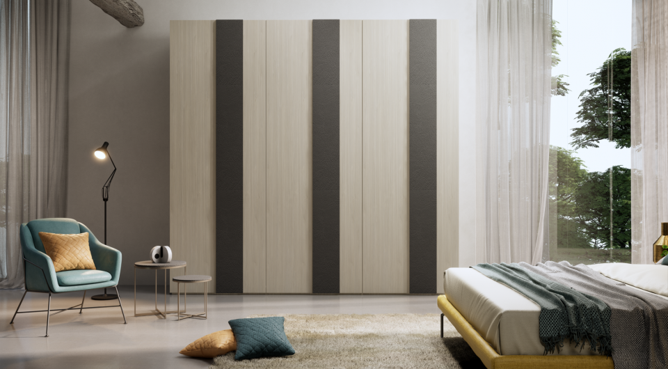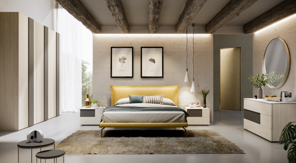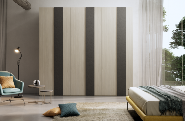 La camera Manuela è completamente personalizzabile, grazie alla possibilità di realizzare su misura l'armadio Maxi e alle tantissime finiture disponibile per armadio e gruppo notte.