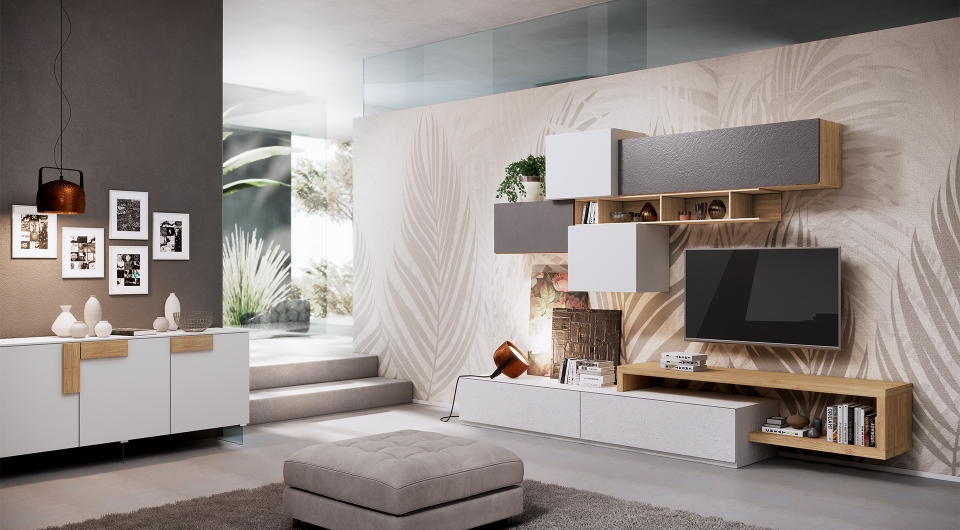 • possibilità di realizzare la parete su misura modificandola in altezza, in larghezza e in profondità, aggiungendo o togliendo pensili, basi o librerie;