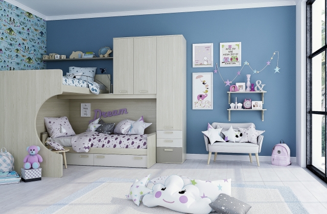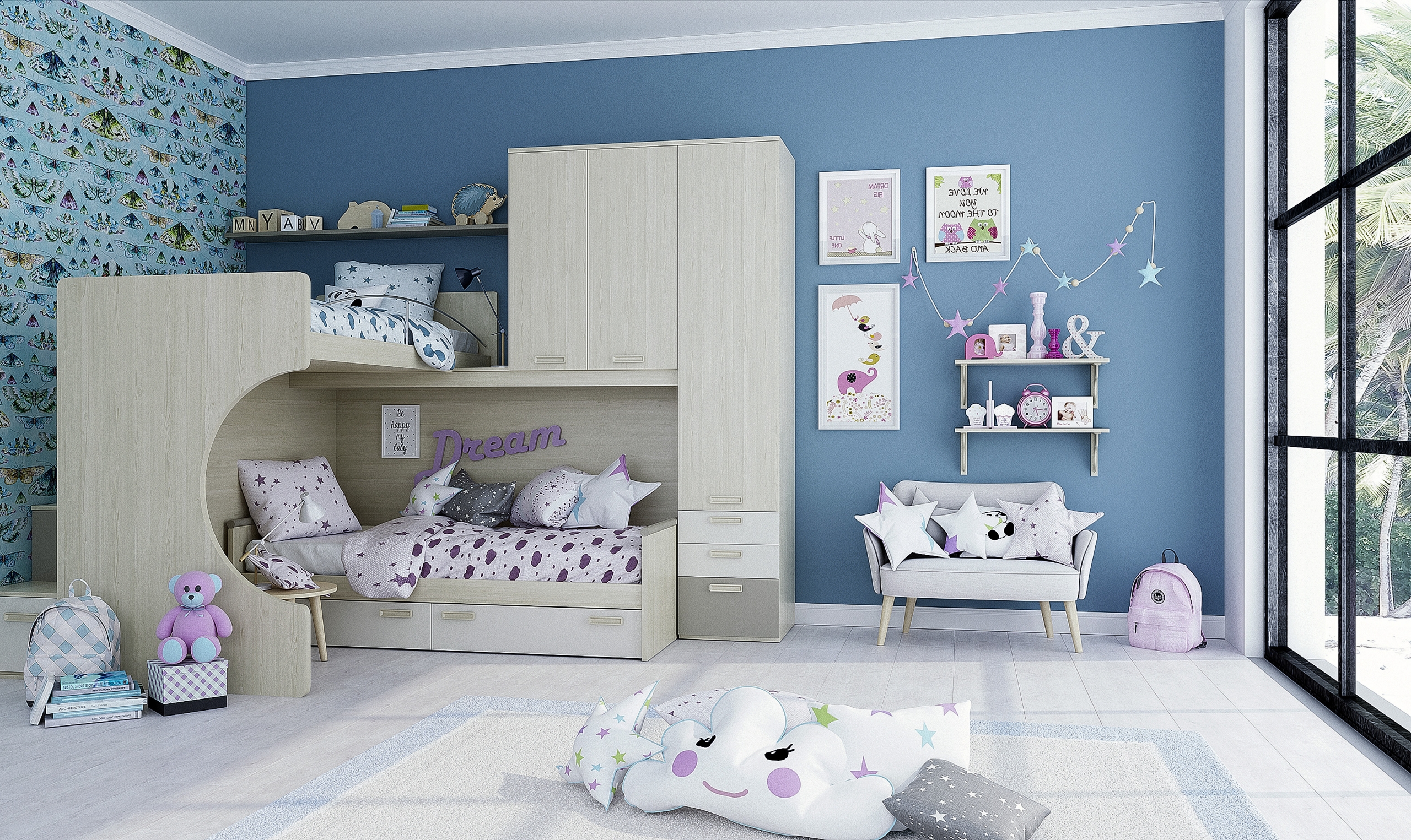 La più classica delle ambientazioni per la camera da letto dei più giovani, arricchita di atmosfera, colore e dettagli studiati nei minimi particolari. La serenità della vita quotidiana garantita da materiali ecologici uniti ad un ampia gamma di colori e finiture per personalizzare l’ambiente più giocoso della casa.