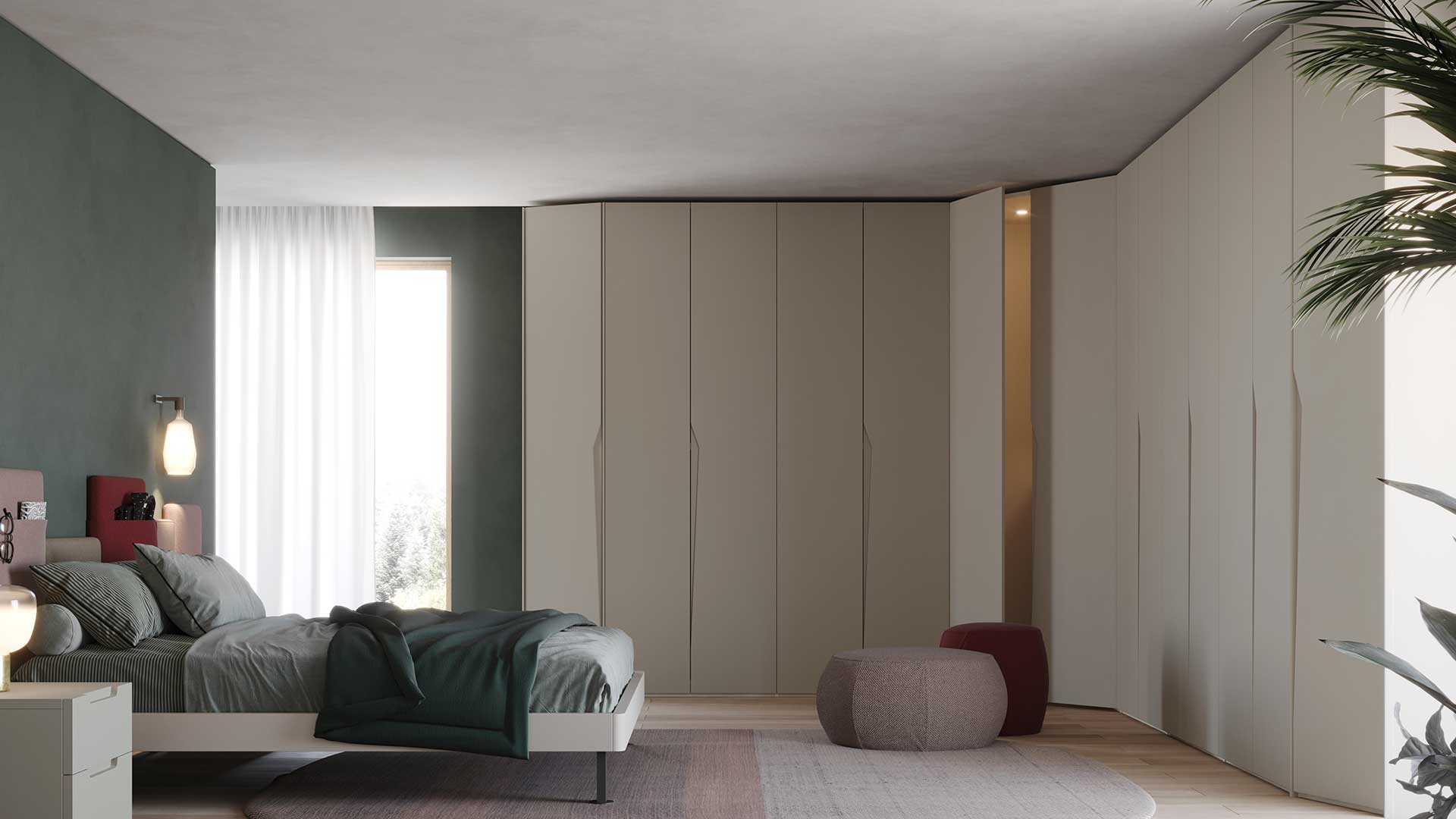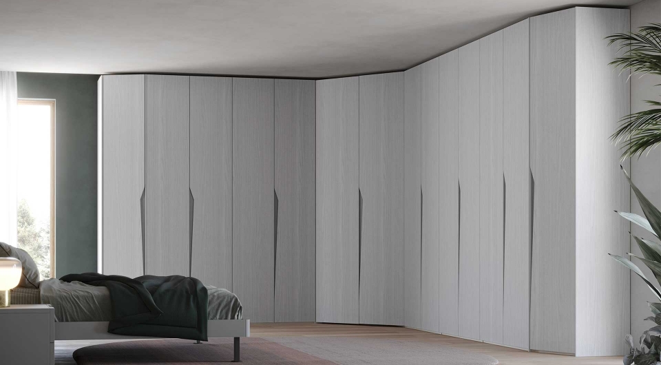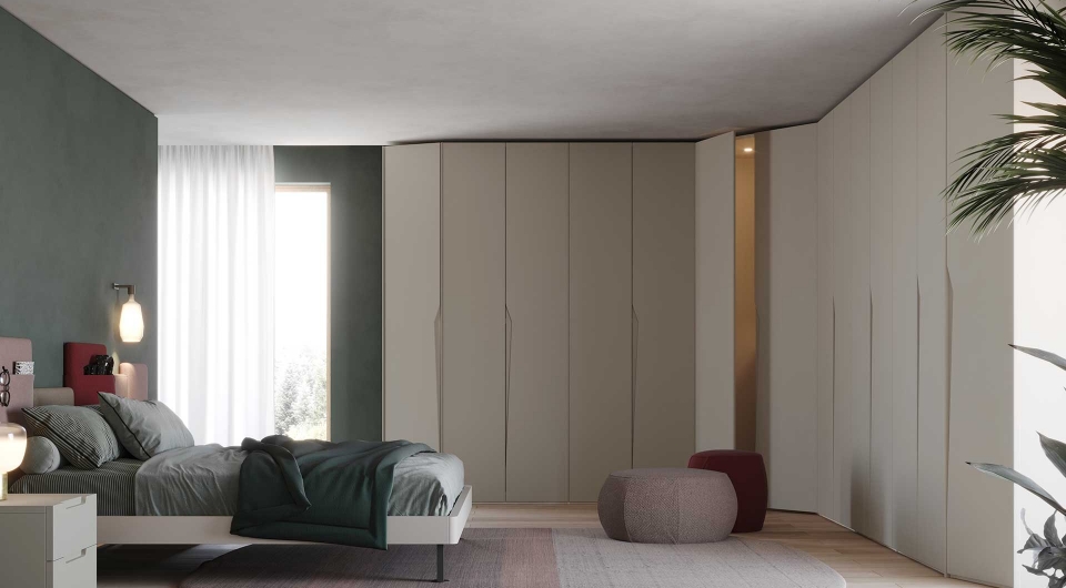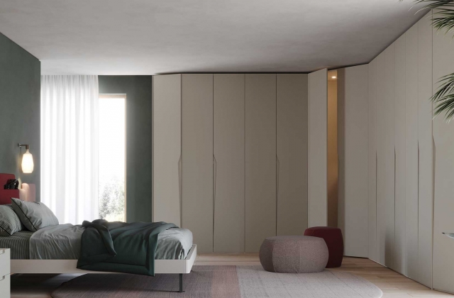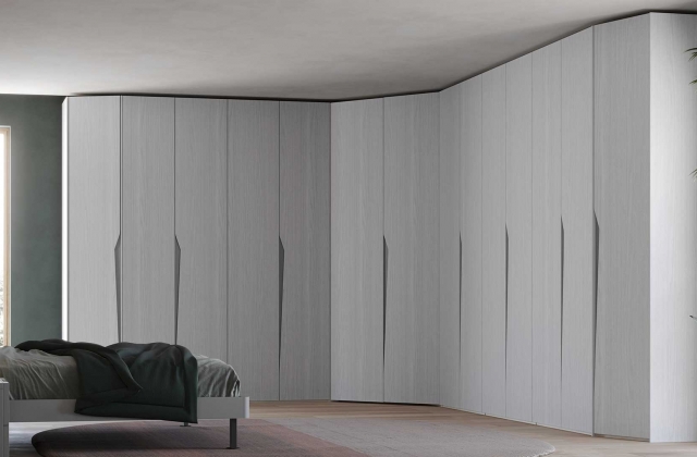 La possibilità di scegliere tra diverse finiture in nobilitato e un ampia gamma di colori per il laccato completano il profilo di un armadio completamente personalizzabile.