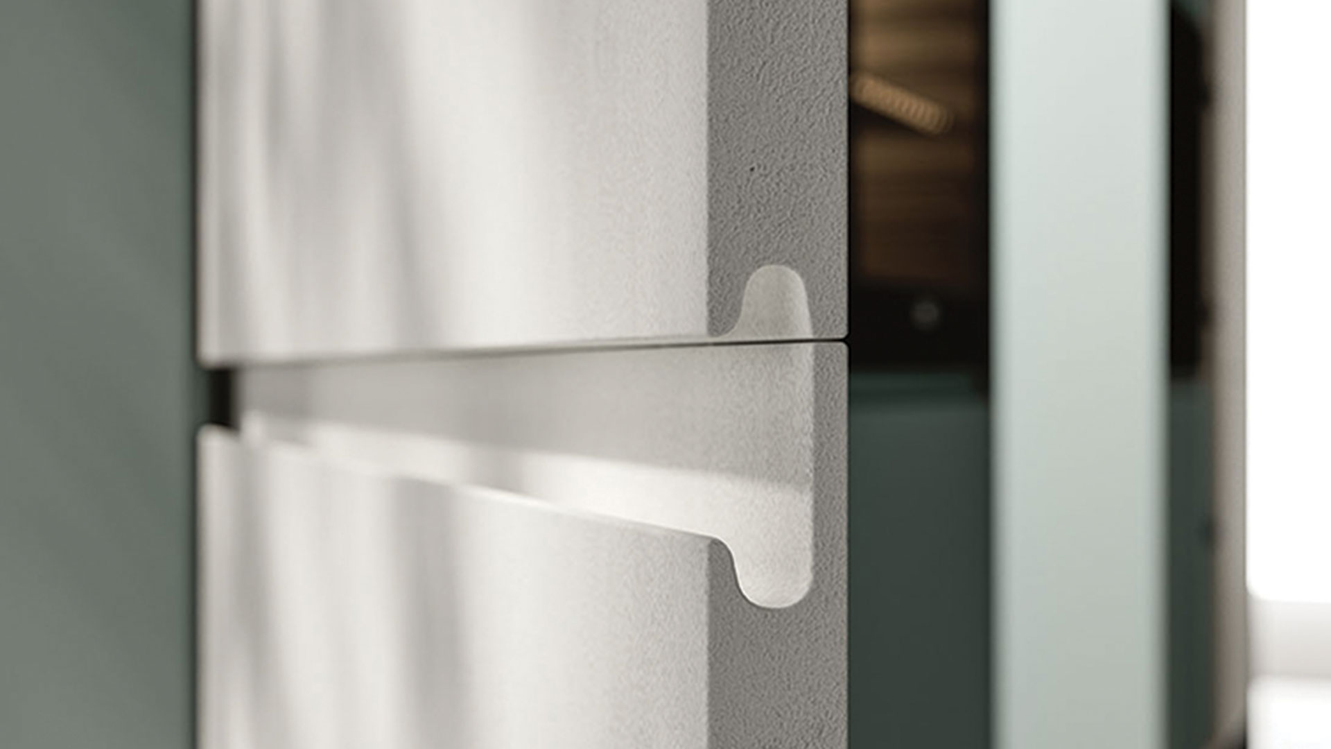 Le ante lisce senza maniglia visibile offrono un'estetica pulita e minimalista che si integra armoniosamente in qualsiasi spazio moderno. La maniglia J-Pull, discretamente integrata nel profilo dell'anta, aggiunge un tocco di modernità senza compromettere la linearità del design.
