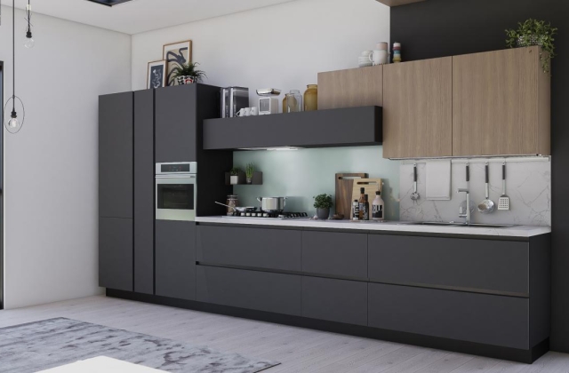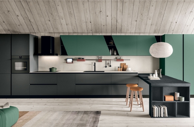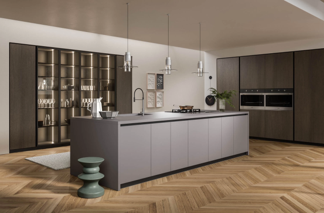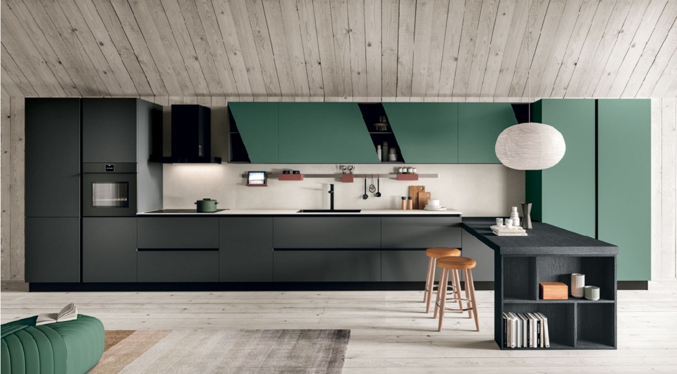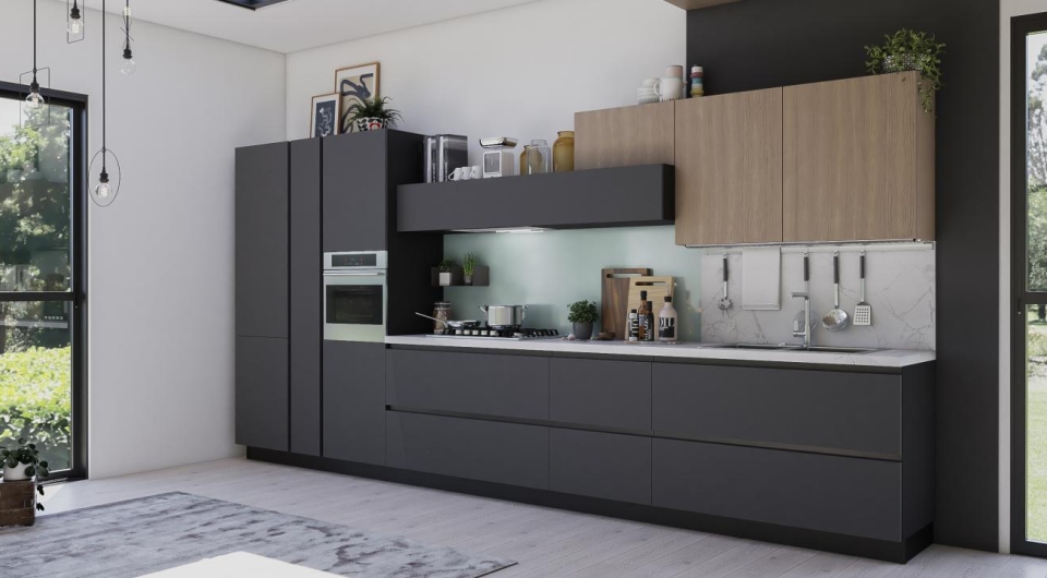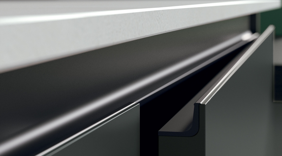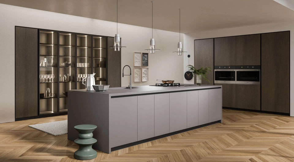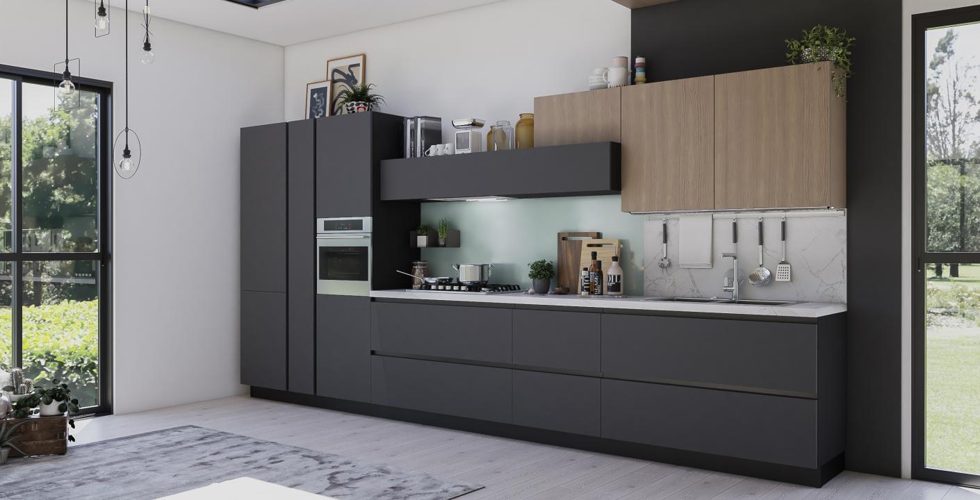 Scopri la nostra cucina Monnalisa dal design moderno e raffinato, caratterizzata da ante spesse 22 mm con bordo squadrato e sistema di apertura con maniglia a gola integrata.