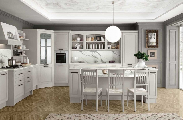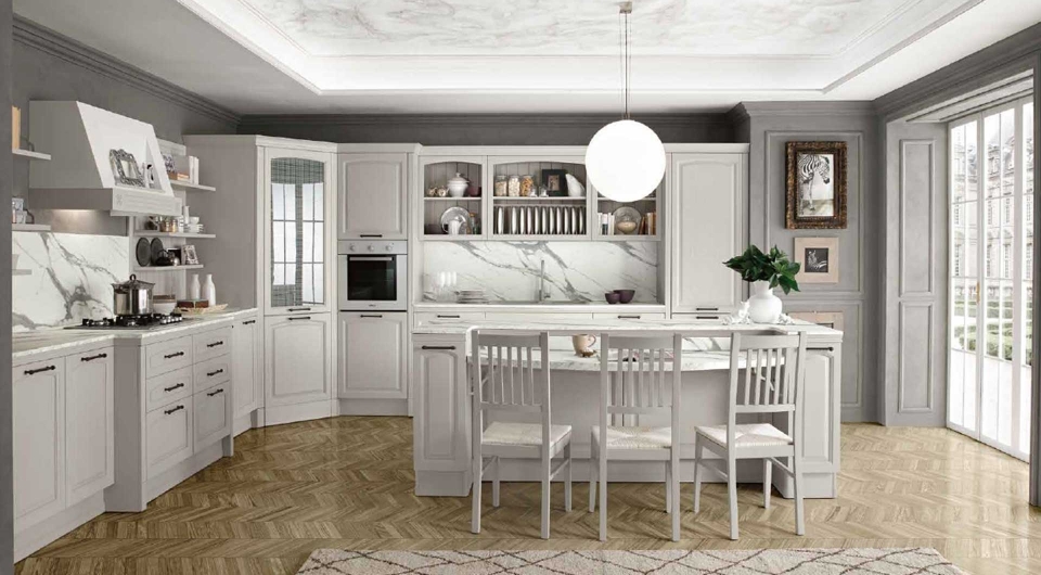 Se ami il calore delle cucine d’un tempo, con le ante a telaio possenti e i piani in pietra duraturi, allora Mora è la tua scelta.