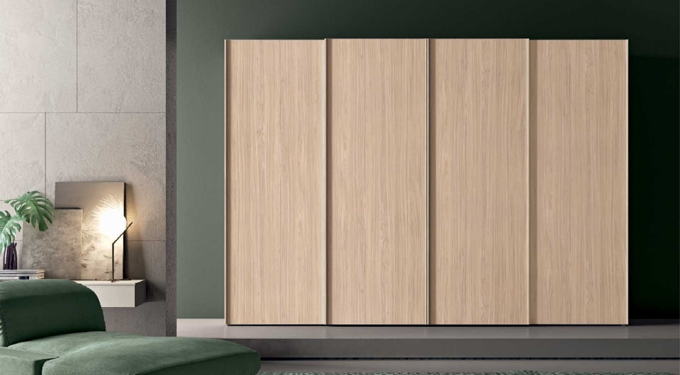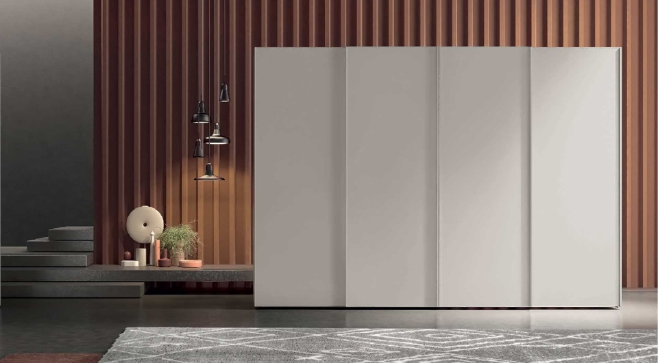 Lineare e funzionale, senza maniglie, le sue ante scorrevoli donano un carattere ricercato e non scontato al modello.