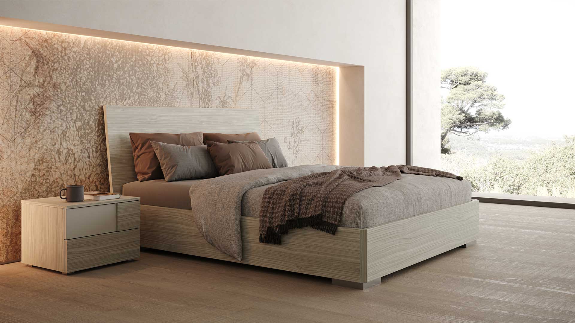 Espressivo e vigoroso, il letto matrimoniale Polena, realizzato in finitura nobilitato cenere wood, donerà un tocco di classe alla tua camera da letto.
