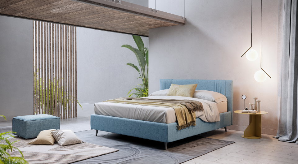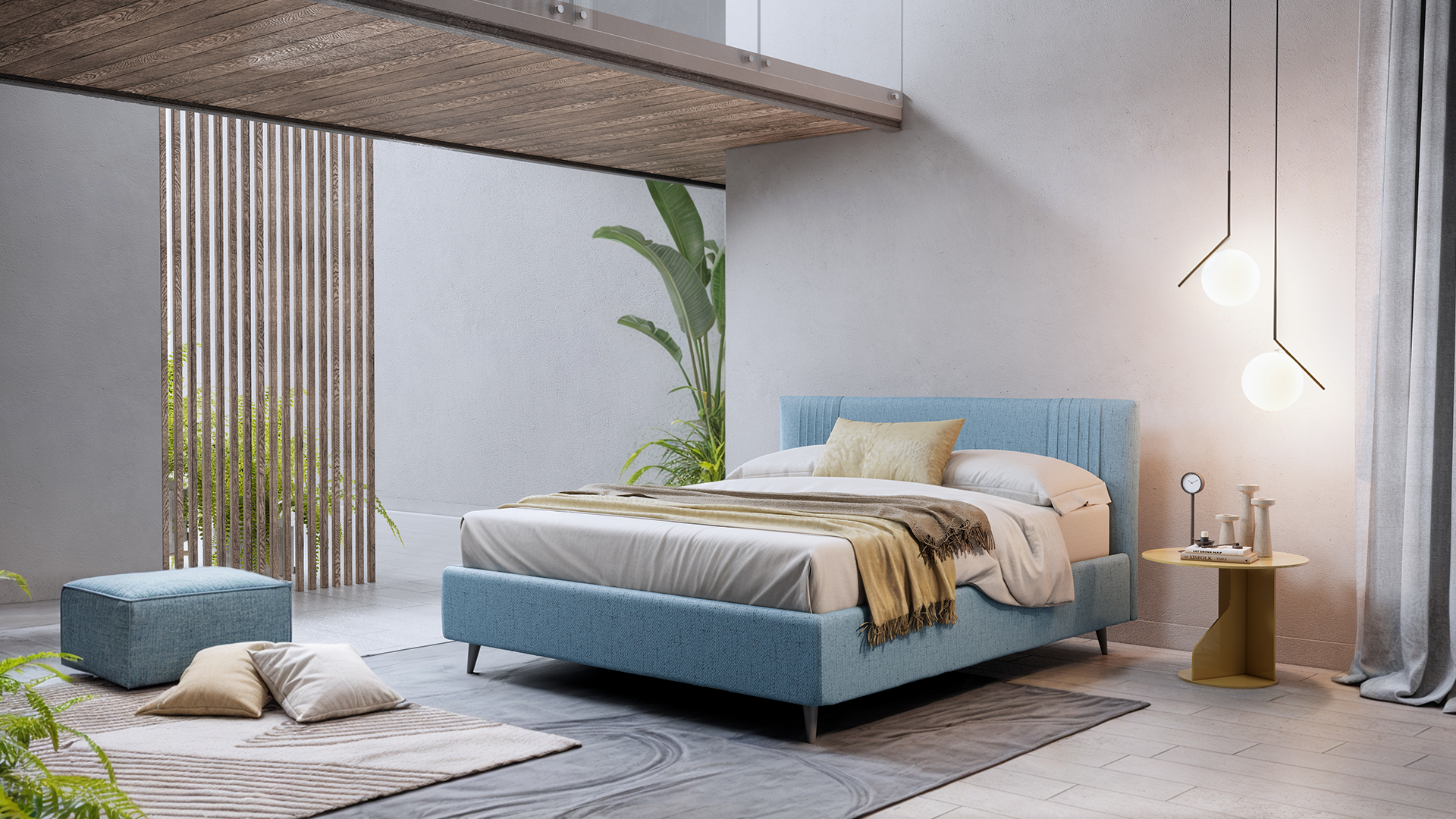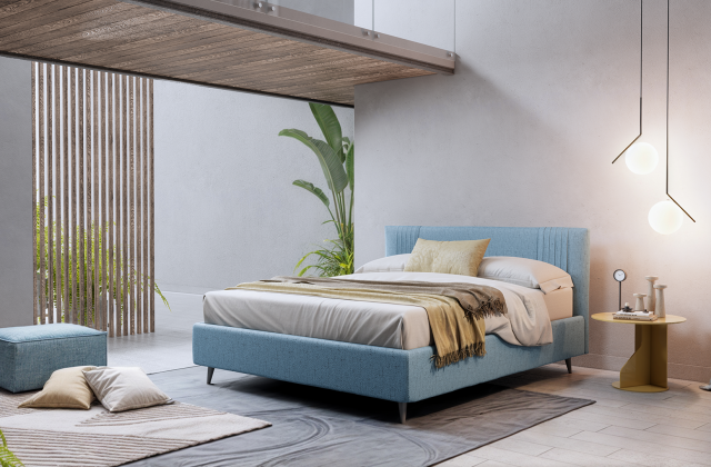 Il design moderno e sofisticato del nostro letto matrimoniale si integra perfettamente con qualsiasi stile di arredamento grazie anche alla vasta gamma di tessuti e colori disponibili, attentamente selezionati per la loro durabilità e facilità di pulizia.