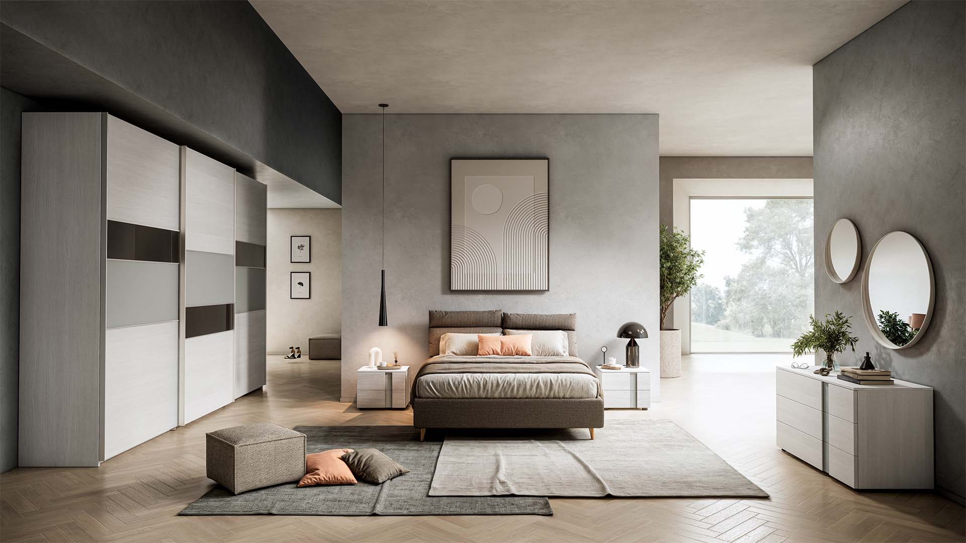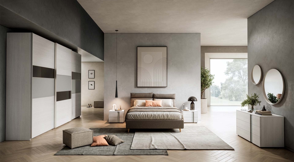 La camera da letto Rimini è la perfetta fusione di stile moderno e comfort, pensata per chi desidera un ambiente accogliente e raffinato.
