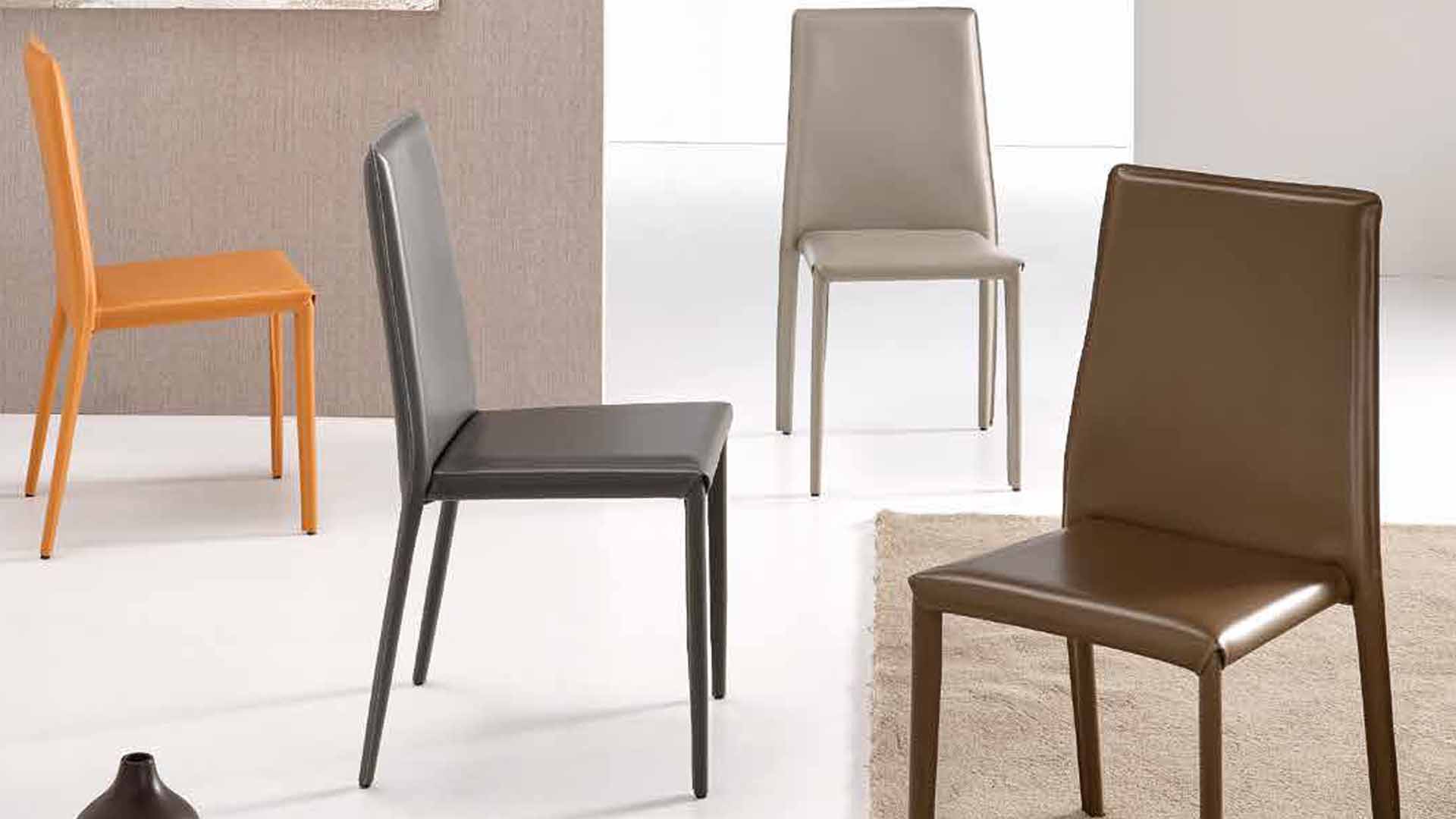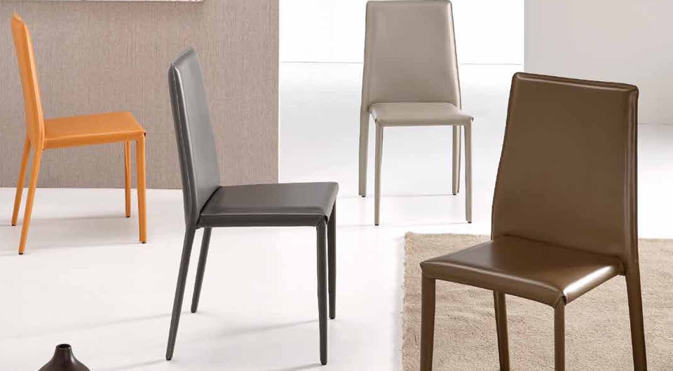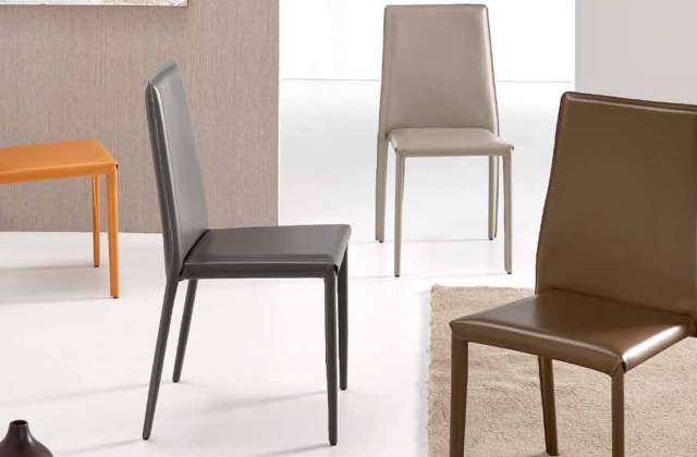 Sedia imbottita in ecopelle con gambe rivestite nella stessa ecopelle.