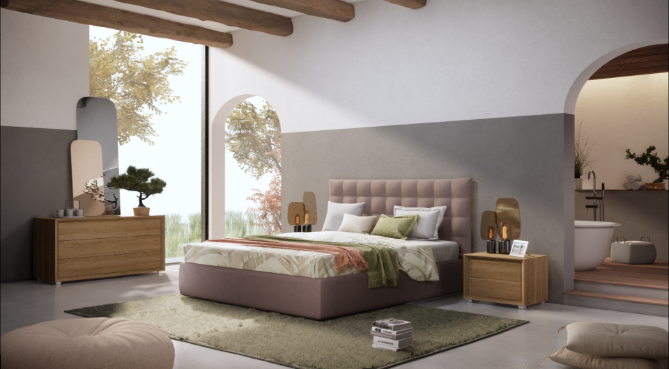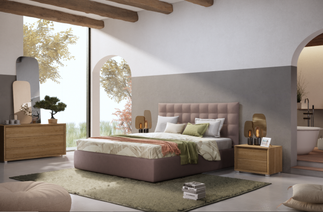 Un letto dalla grande qualità grazie alle cuciture a quadri della testata abbinate alla morbida ovatta all'interno.