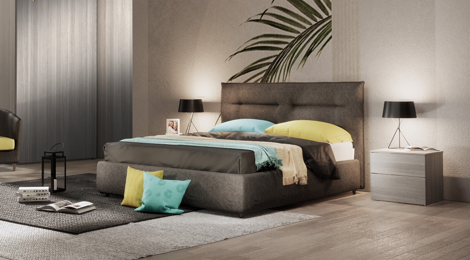 Il modello Silene è realizzato con testata e giroletto imbottiti disponibili in diverse tipologie di tessuto e colore.