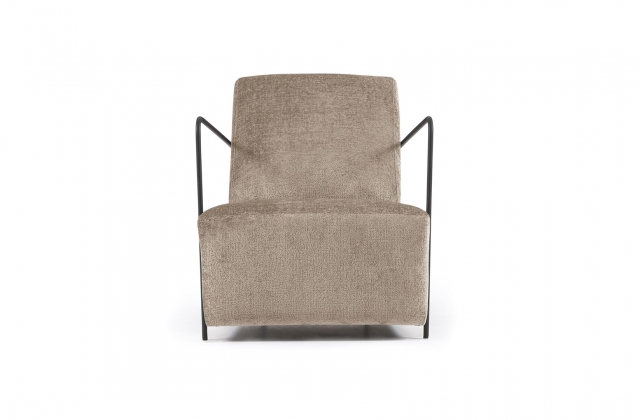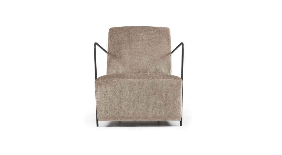 La poltrona Softy, con una struttura in acciaio pregiato e rivestita in soffice ciniglia, è disegnata ispirandosi alla tendenza di mostrare l'intera struttura a colpo d'occhio.